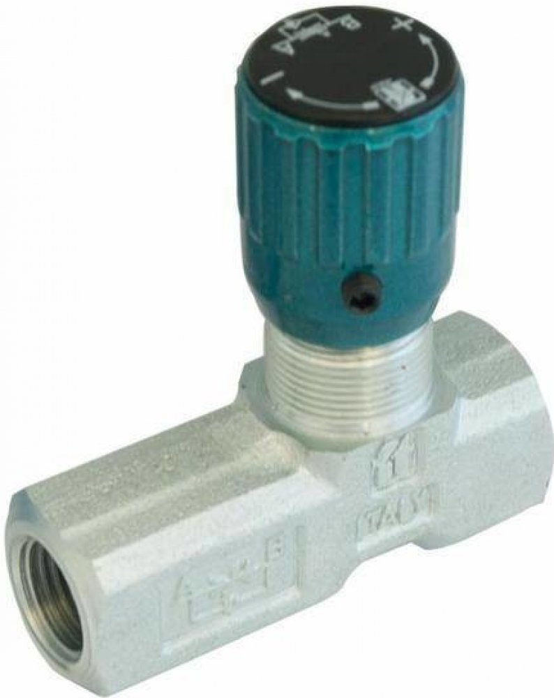 Ventil umožňuje plný průtok jedním směrem. Průtok zpět je možno plynule regulovat.