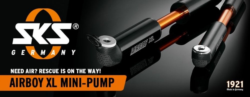 SKS Airboy XL - jedná se o reinkarnaci velice oblíbené pumpičky. Nyní je zpět v několika variantách a v plné síle, nabízí rychlé a efektivní foukání díky dvěma pístům a dvěma komorám. Vše je zakomponováno do elegantní malé pumpy, která se vejde do kapsičky od dresu.