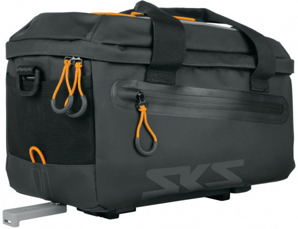 Brašna INFINITY TOPBAG značky Basil s objemem 7 litrů a gumovou síťovanou kapsou nabízí dostatek úložného prostoru. Robustní tkanina je díky lepeným švům zcela nepromokavá. Velká vnitřní taška má rolovací uzávěr a polstrované vnitřní přihrádky dodatečně chrání obsah. Brašna je vybavena reflexními prvky a poutky pro upevnění zadního světla.