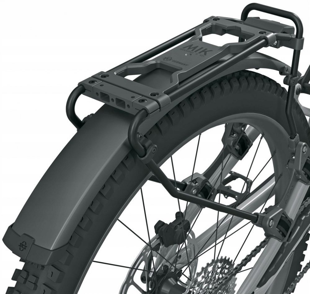 Přídavný zadní blatník k nosiči SKS Infinity Universal nabízí ochranu brašen a cyklisty před stříkající vodou a bahnem.
