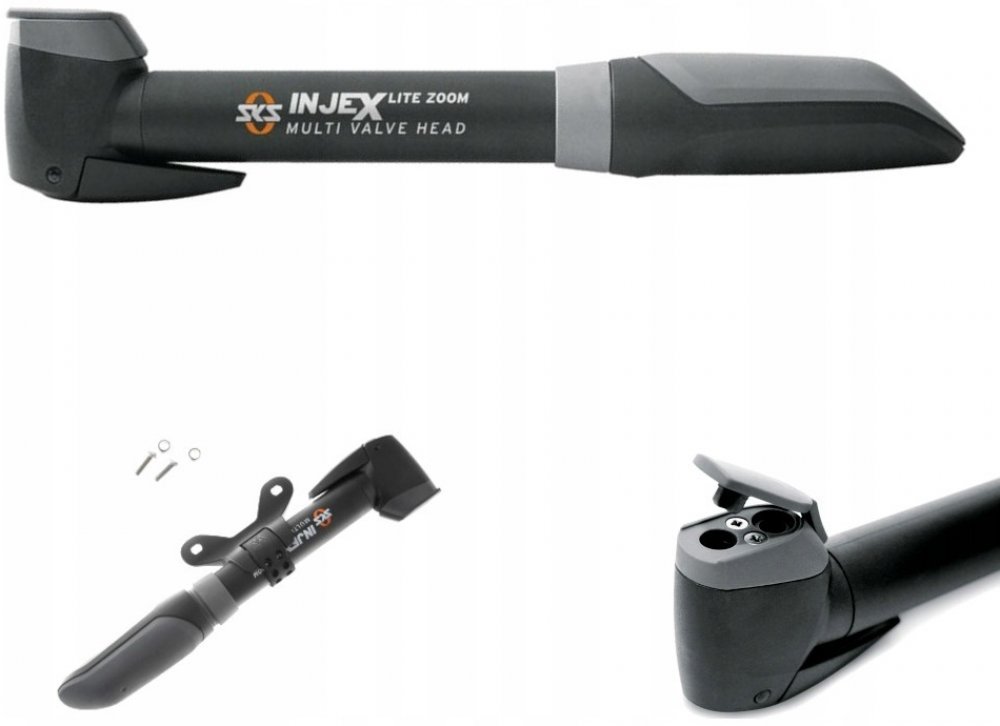 Pumpa SKS Injex Lite s univerzálním připojením více ventilů - ideální pro treková a horská kola - díky velkému objemu na zdvih. Rukojeť s optimální ergonomií, upínací pákou ventilu a vyměnitelnými gumami ventilů.