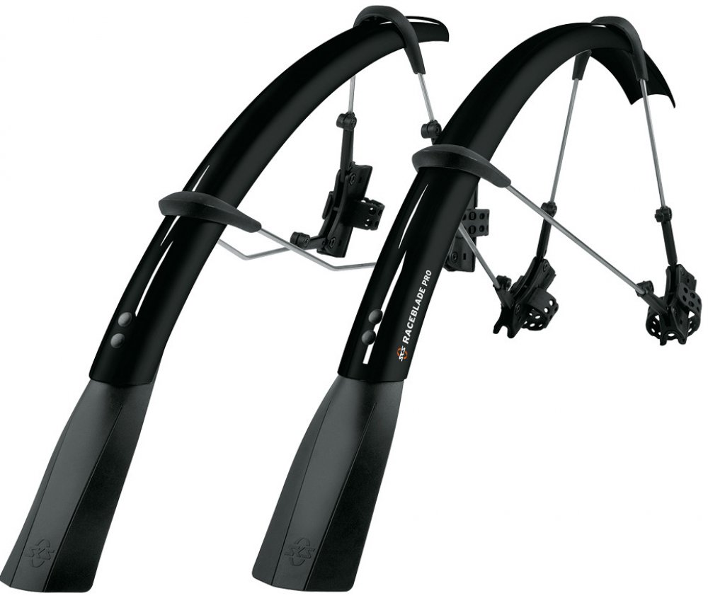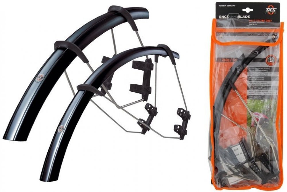 Blatníky pro závodníky: ať už na zimní trénink nebo výlet na kole v letním dešti – ultralehký blatník SKS RACEBLADE z vysoce výkonného nárazuvzdorného plastu s extra dlouhým spoilerem nabízí dokonalou všestrannou ochranu. Dvoukloubový rychloupínací systém se nejen rychle montuje, ale hodí se i na aero vidlice a rámy.