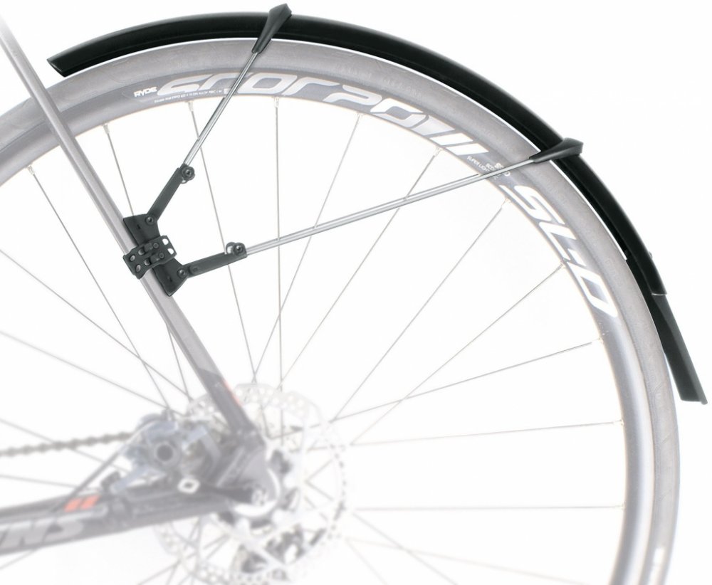RACEBLADE lze dokonale přizpůsobit poloměru kola nastavením délky vzpěr. Součástí je fólie odolná proti poškrábání. Vhodné i pro kotoučové brzdy.