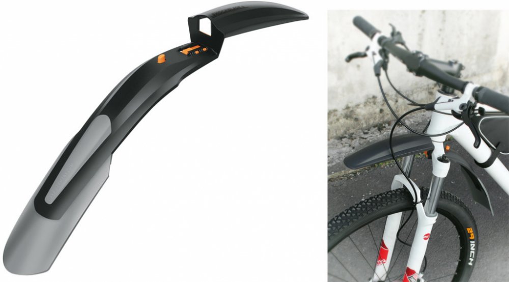 - Rychloupínací blatník na přední odpruženou vidlici pro 28" a 29" kola.