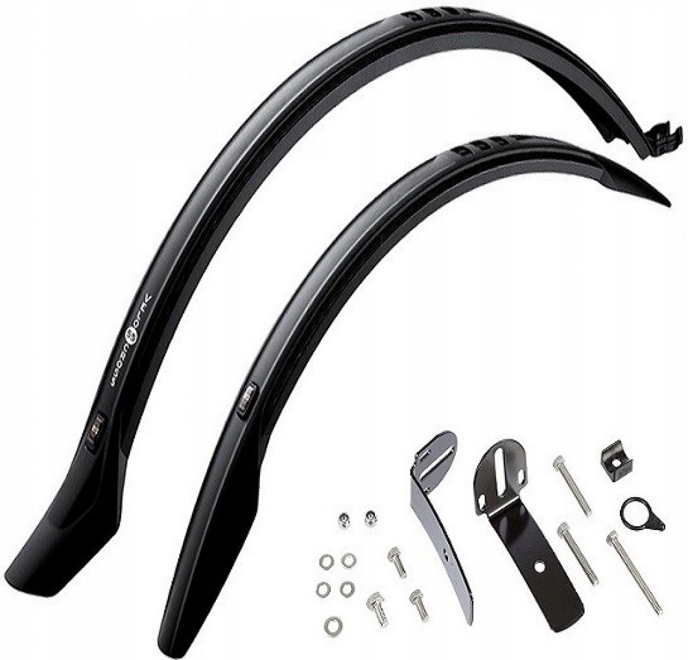 Univerzální montážní systém umožňuje snadné připevnění k různým typům rámů. Přední blatník se uchycuje k brzdovému můstku a zadní k sedlové trubce a můstku zadní stavby. Pro zvýšení stability je možné dokoupit nerezové vzpěry (najdete jako související produkt), které se snadno zacvaknou do připravených otvorů na blatnících.