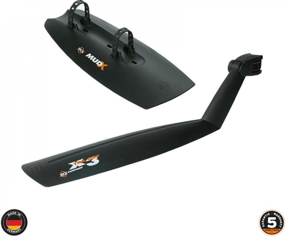 Mud-X je jednoduchý plastový blatník pod rám s gumovými úchyty. Vhodný pro všechny běžné typy kol.