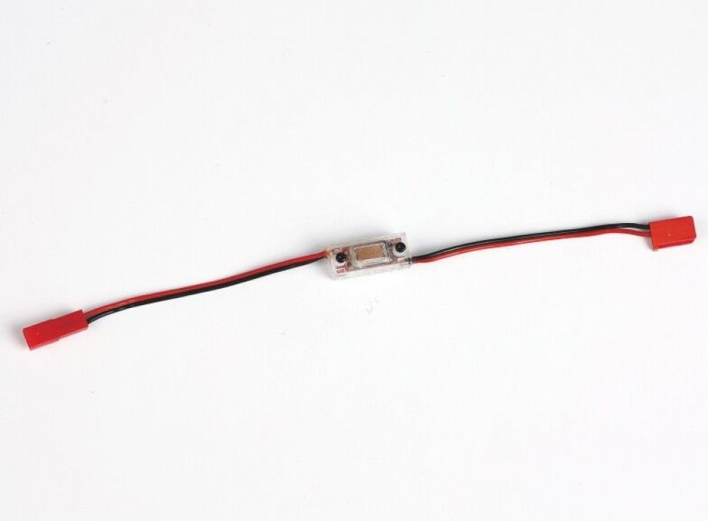 Vypínač je uzavřen v plastovém pouzdru, dodávaném s 2 výměnnými zadními víčky – jedno má 3 montážní patky pro upevnění na držák transponderu („čipu“ pro počítání kol); druhé víčko bez patek použijete pro upevnění do modelu pomocí oboustranné lepící pásky. Napájecí zásuvka je univerzální, umožňující připojení akumulátorů se servokonektory Futaba (s výstupkem na boku) i Hitec/JR (bez výstupku). Výstupní servokonektor je Hitec/JR.
