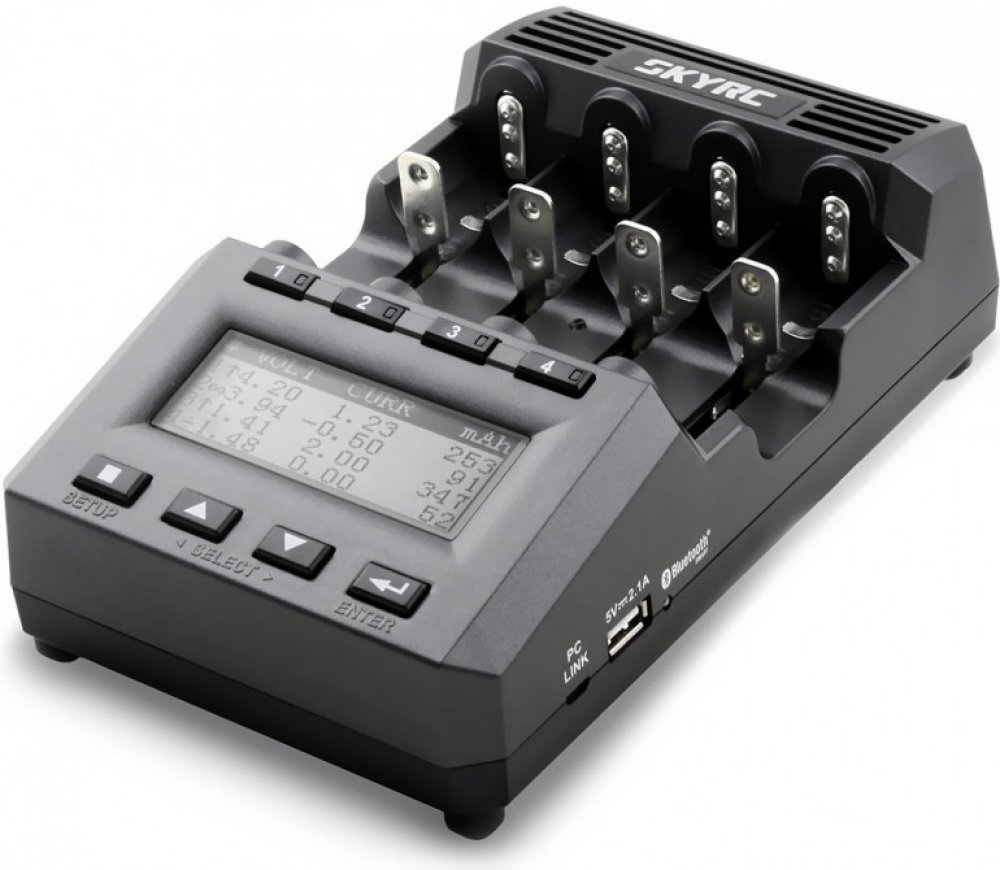 - Pro nabíjení a vybíjení až čtyř článků ve válcovém pouzdře NiMH, NiCd, NiZn, NiMH-Eneloop, Lithium-Ion, LiIo4.35, LiFePO4 a také Li-Mn (s použitím Li-ion programu).