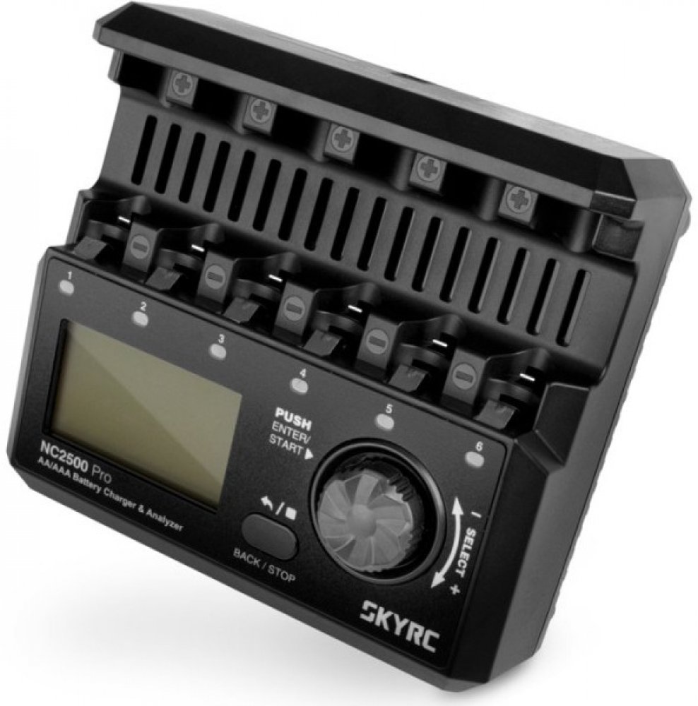 Nabíječka SkyRC NC2500 Pro nejen nabíjí baterie AA a AAA, ale také je regeneruje. Zařízení nabízí několik různých provozních režimů a jeho další výhodou je funkce startování, která umožňuje nastartovat motory modelů, které nebyly dlouho používány. K dispozici je také port USB, který podporuje rychlé nabíjení QC 3.0, a nabíječka je vybavena 6 sloty pro baterie.