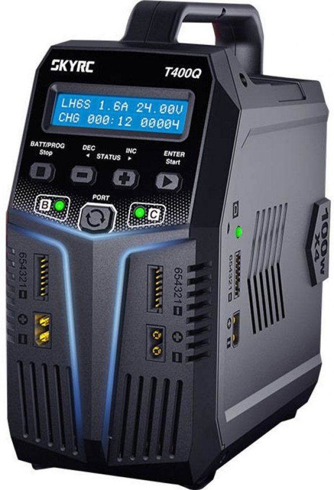 Čtyřkanálová nabíječka SkyRC T400Q je nezbytným nástrojem pro každého, kdo se věnuje modelářství! Nabíječka zaručuje pohodlné nabíjení více zařízení najednou. Je vybavena 4 porty, které umožňují vybíjení a nabíjení s maximálním výkonem až 100 W a nabíjecím proudem 12 A. Automaticky upravuje intenzitu nabíjení vašich zařízení a disponuje praktickým režimem nabíjení při nízkých teplotách. Její používání je mimořádně snadné a díky ergonomickému designu ji můžete bez problémů přenášet kamkoli!