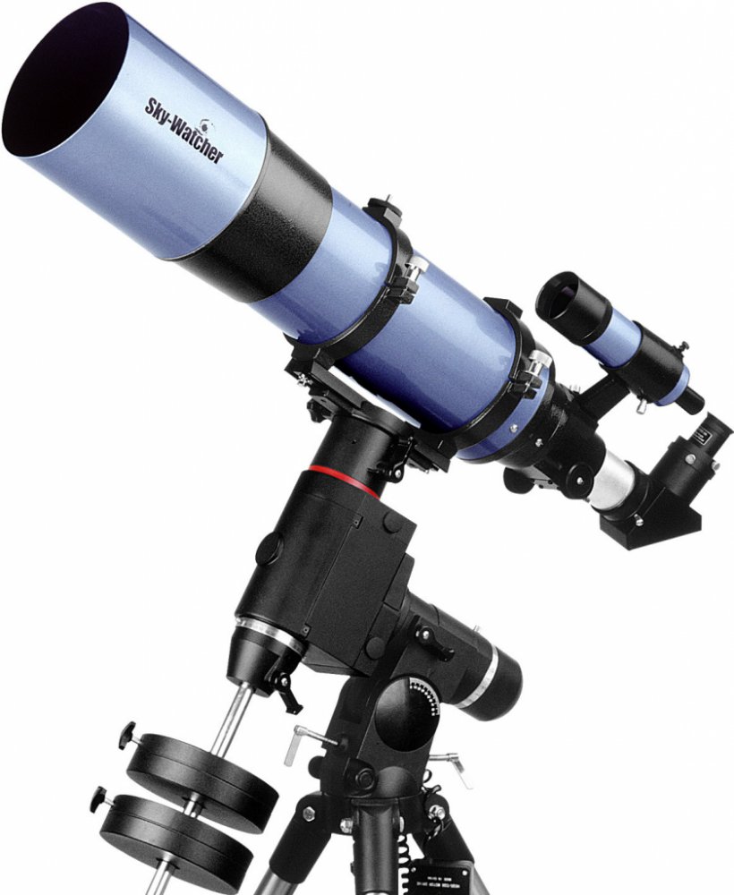 Čočkový dalekohled na pevné paralaktické montáži EQ-5 s třínohým stativem z nerezových 1,5” trubek. Má instalovaný polární hledáček s osvětlenou stupnicí a obsahuje stavitelné stupnice v RA a DEC ose. V polární ose a v deklinační ose je jemný pohyb neomezen. Součástí je hledáček 9x50, sada 2 ks závaží, okulár APEX f d28 mm, 2”, zenitální 90° zrcadlový modul d2”. Obraz je vzpřímený stranově obrácen...