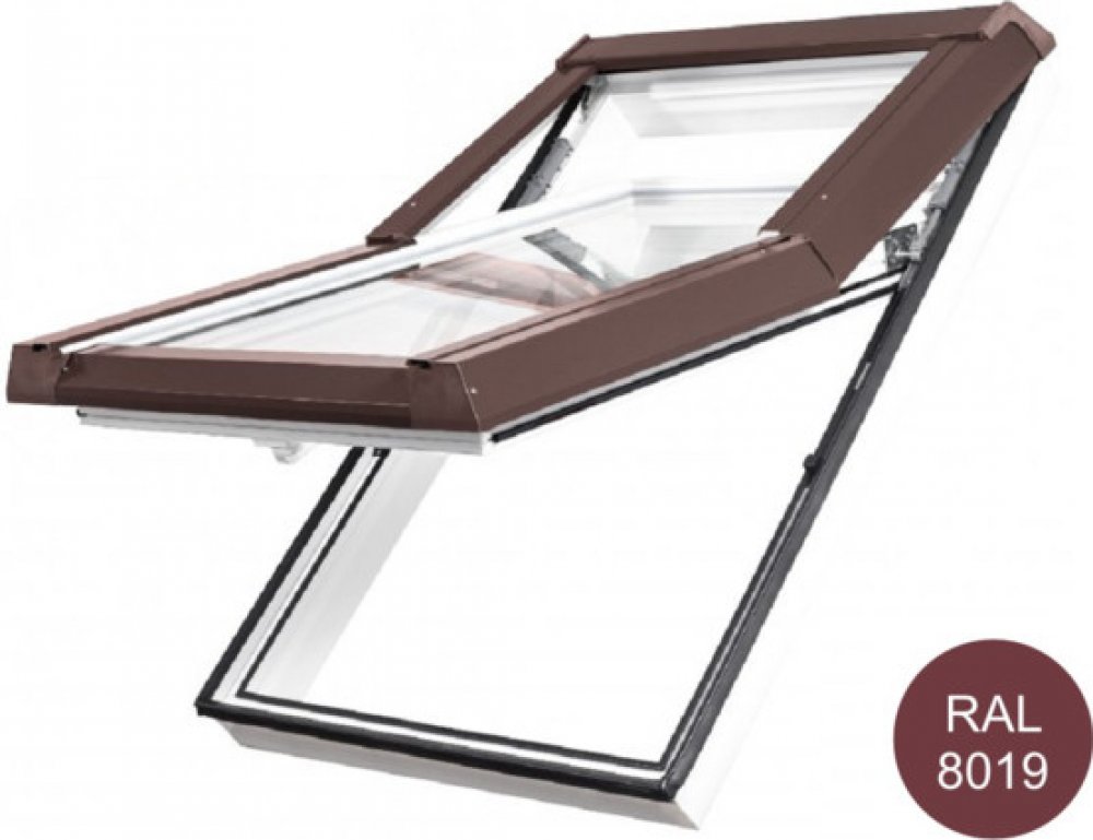 SKYLIGHT Střešní okno plastové 55x78 cm bílé s hnědým oplechováním
