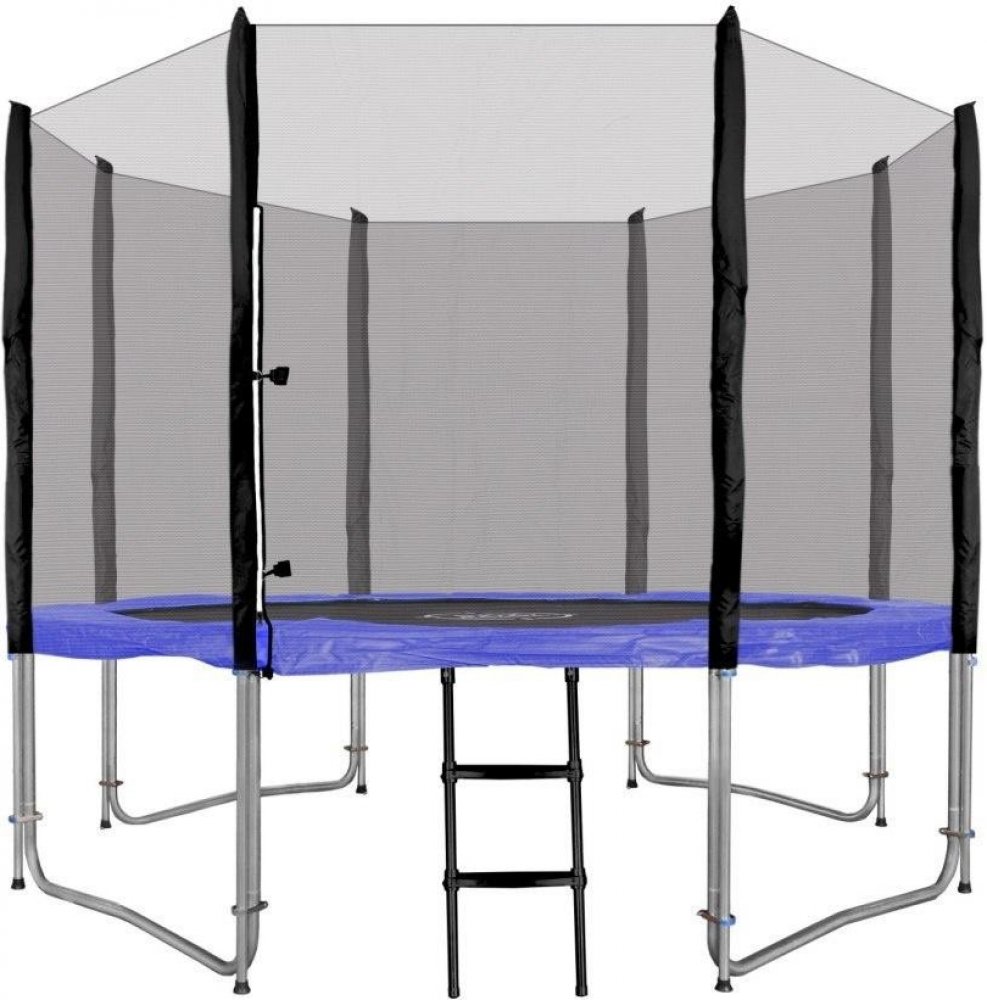 PopisZahradní trampolína s venkovní bezpečnostní sítí a žebříkem 10Ft / 305 cmTrampolínazahradní trampolína o průměru 305 cm,trampolínová podložka napnutá 64 pozinkovanými pružinami o délce 13 cm, krytá ochranným límcem,celý rám trampolíny z pozinkované tvrzené oceli,4 nohy ve tvaru písmene U, které výrazně zvyšují stabilitu konstrukce,síť natažená na 8 stožárech sahajících k zemi, což zajišťuje v...