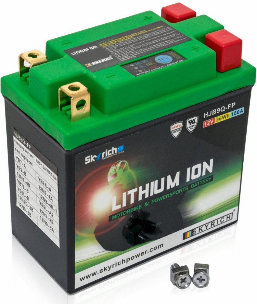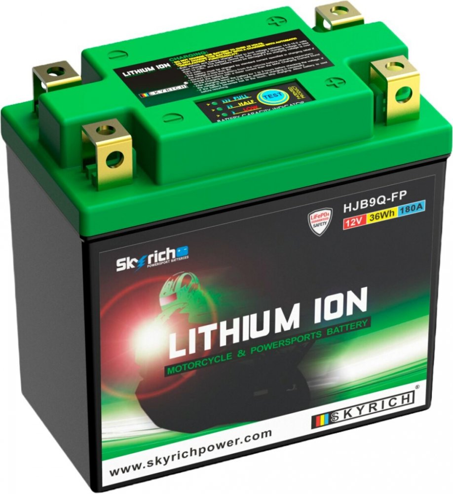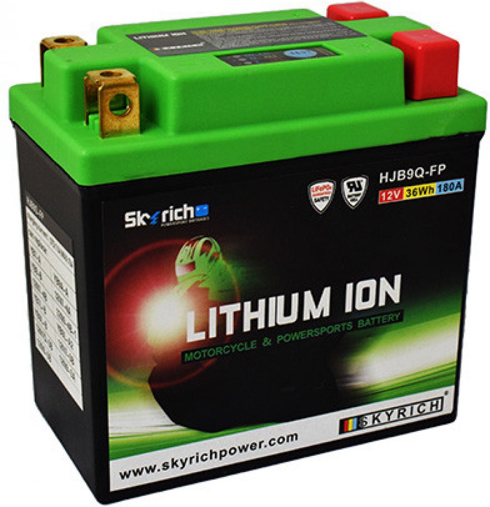 Lithiové akumulátory Skyrich LiFePO4 jsou známé svými malými rozměry. Dodávají se s distančními podložkami pro uzpůsobení jakémukoli bateriovému prostoru v motocyklu. Při správném používání nehrozí riziko výbuchu nebo požáru, jako je tomu u jiných lithiových akumulátorů. Akumulátor HJB9Q-FP je šetrný k životnímu prostředí, protože neobsahuje jedovaté kovy jako olovo, rtuť či kobalt. Neobsahuje ani kyselinu sírovou, jako je tomu u olověných akumulátorů, a proto je použitelný v jakékoli poloze, včetně "vzhůru nohama". Akumulátor se dodává naplněný, přednabitý, připravený k okamžitému provozu.