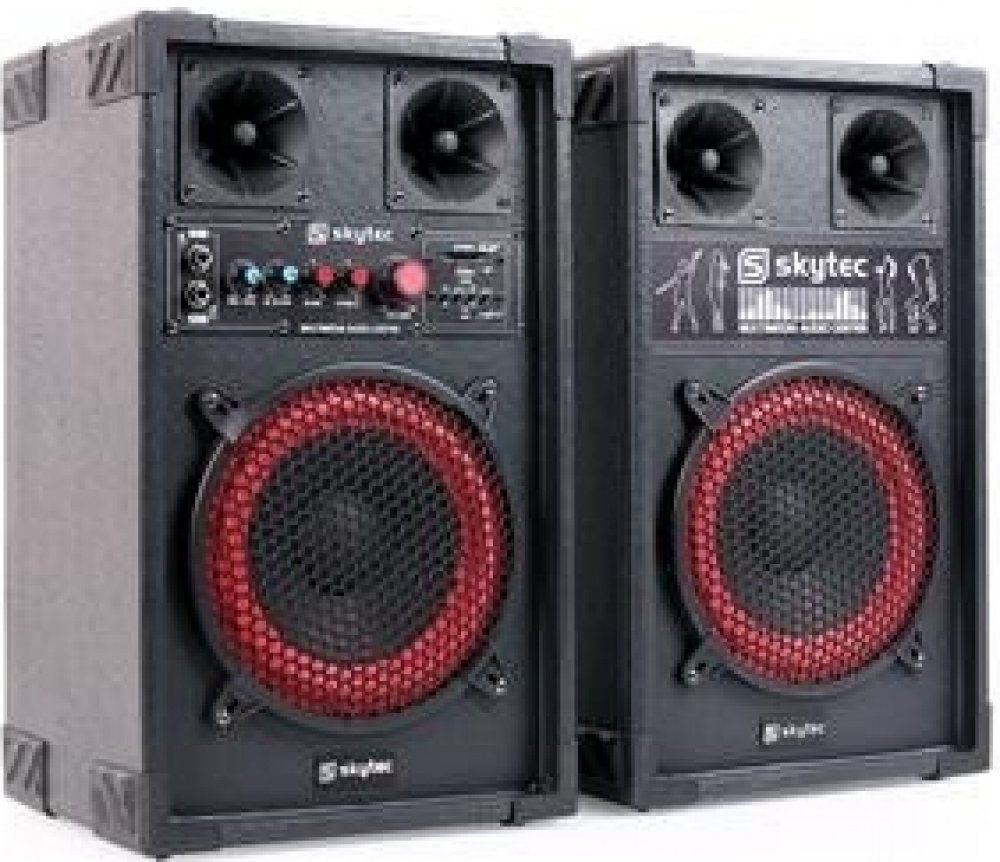 Fenton / Skytec SPB-8 repro set sestává z aktivního i pasivního reproduktoru a poskytuje plný a silný zvuk. Set Fenton SPB-8 je ideální pro středně velké akce, přičemž masivní konstrukce umožňuje mobilní použití i ve venkovních podmínkách. S maximálním výkonem 400W a 8" (20cm) bass driverem, master/slave reproduktory SPB-8 vytváří působivý zvuk. Bass reflex design dovedně zesiluje sílu zvuku, čímž zvýrazní basové linky. SD a USB sloty v přední části reproduktoru umožňují přehrávání MP3 přímo z vhodného média. Dva mikrofonní vstupy dělají z SPB-8 ideální nástroj pro vystoupení zaměřená na zpěv, jako jsou třeba karaoke párty. RCA vstup nabízí rovněž možnost napojení na další zařízení. Nízká hmotnost v kombinaci s extrémní pevností MDF konstrukce umožňují díky horním madlům snadný transport, přičemž rozměry Skytecu SPB-8 zajišťují uskladnění nenáročné na prostor.