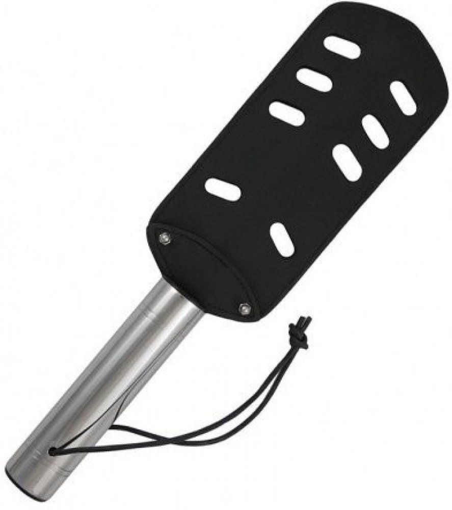 Slave4master The Hitman Leather Paddle BDSM plácačka s otvory a ocelovou rukojetí