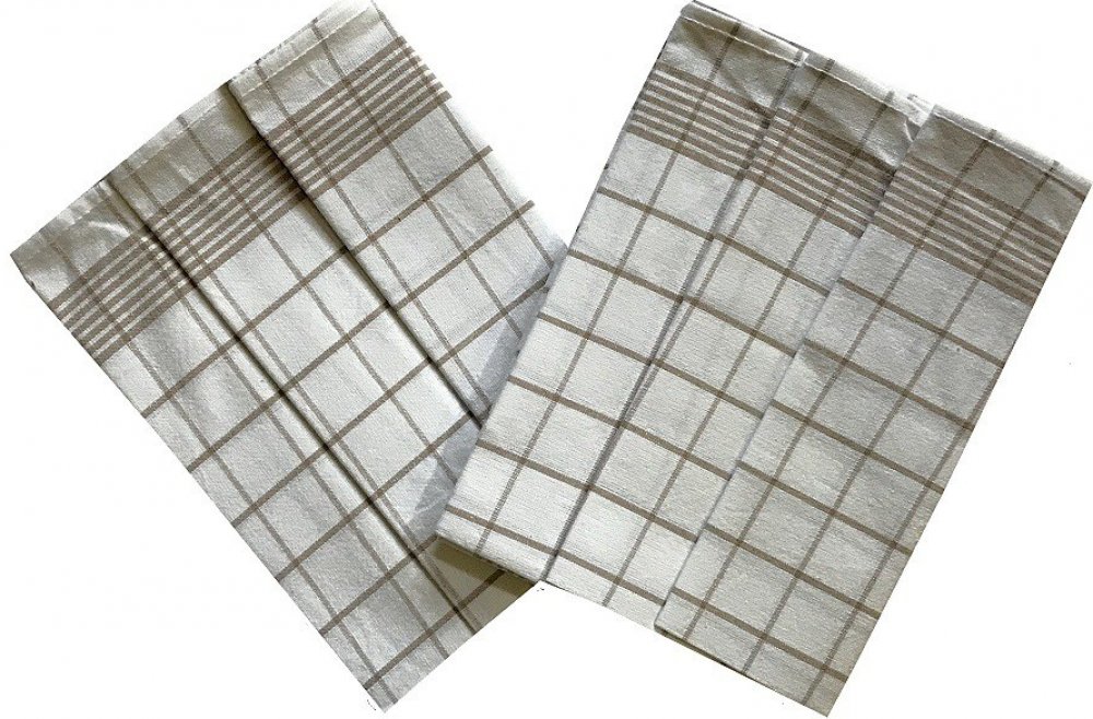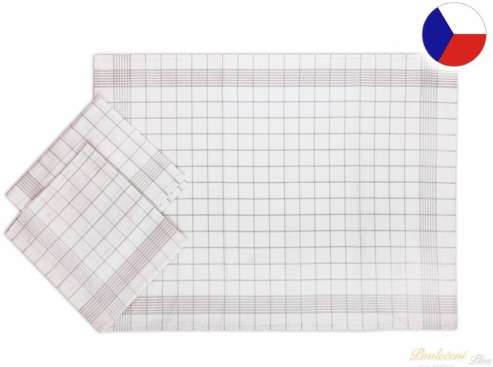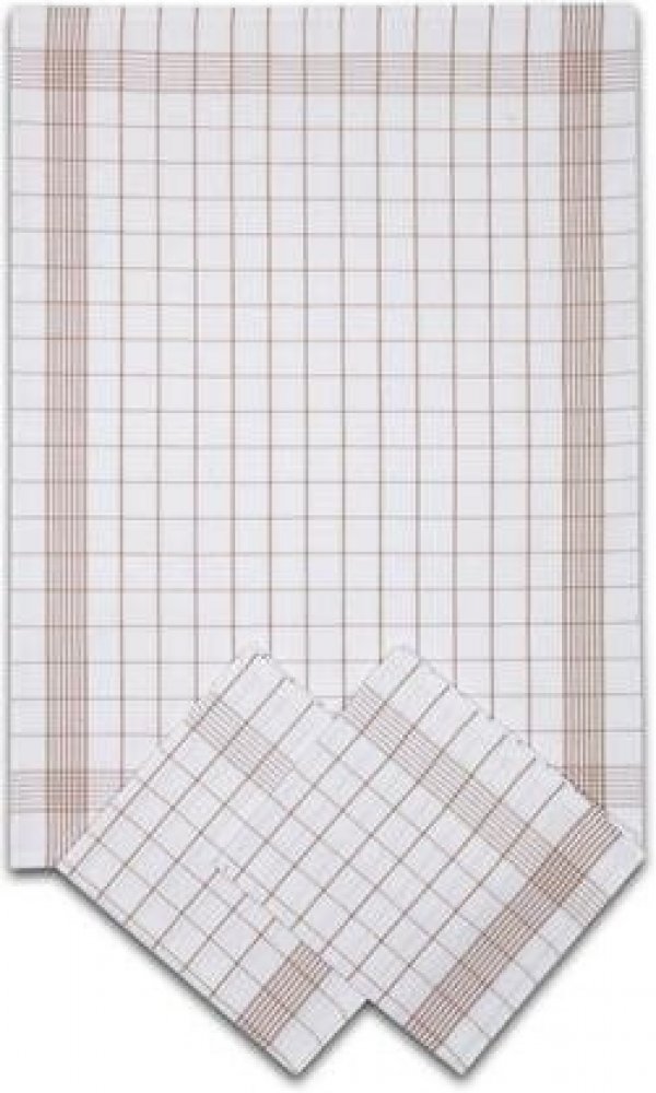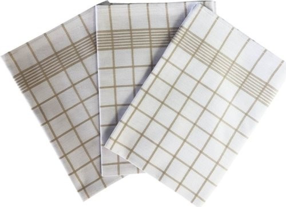 Sada tří bavlněných utěrek s kostkami - kombinace barev bílá a béžová. Kuchyňské utěrky jsou nezbytným vybavením domácnosti a nesmí chybět v žádné kuchyni. Tyto utěrky jsou vhodnější na utírání menšího nádobí, ideální na doleštění skleniček před servírováním nebo na utírání rukou při vaření. Jistě dobře poslouží jako textilní ubrousek na svačiny nebo sušení ovoce či hub. Český výro...