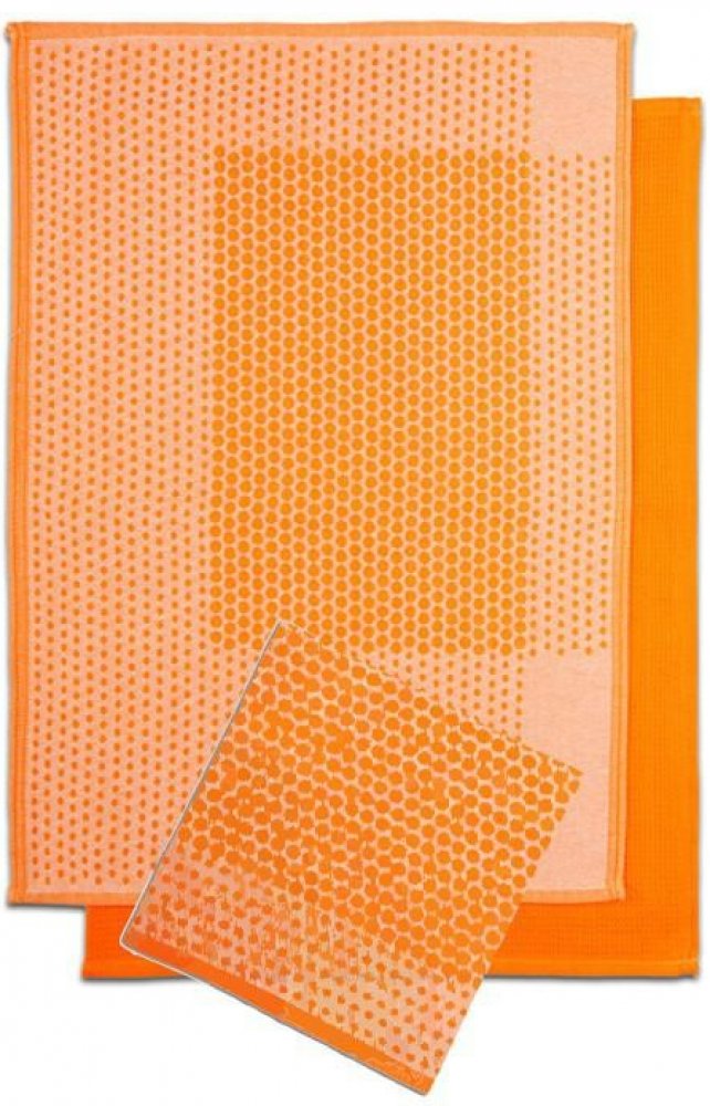 Klasické vaflové utěrky ze 100% bavlny, které jsou obzvláště savé. Dodáváme je v neobvyklém designu s jasně zářivým barevným podkladem, na kterém jsou rozprostřeny světlé puntíky.V balení jsou 2ks žakárová s puntíkama a 1ks jednobarevná vaflová. Varianta utěrky se sytě oranžovým podkladem.