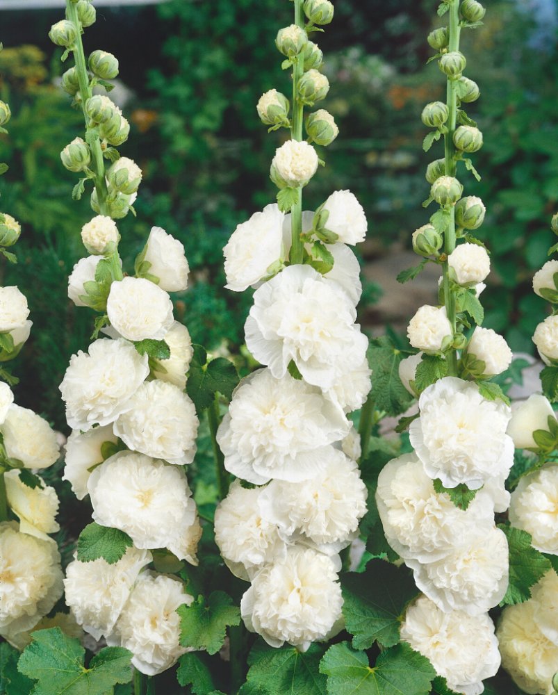 Slézová růže 'Double White' má překrásné květy něžně bílé barvy, které do vaší zahrady přilákají spoustu motýlů. Zaoblená poupata se otevírají na vzpřímeném klasu do mnoha bílých květů, které jsou mírně nařasené.