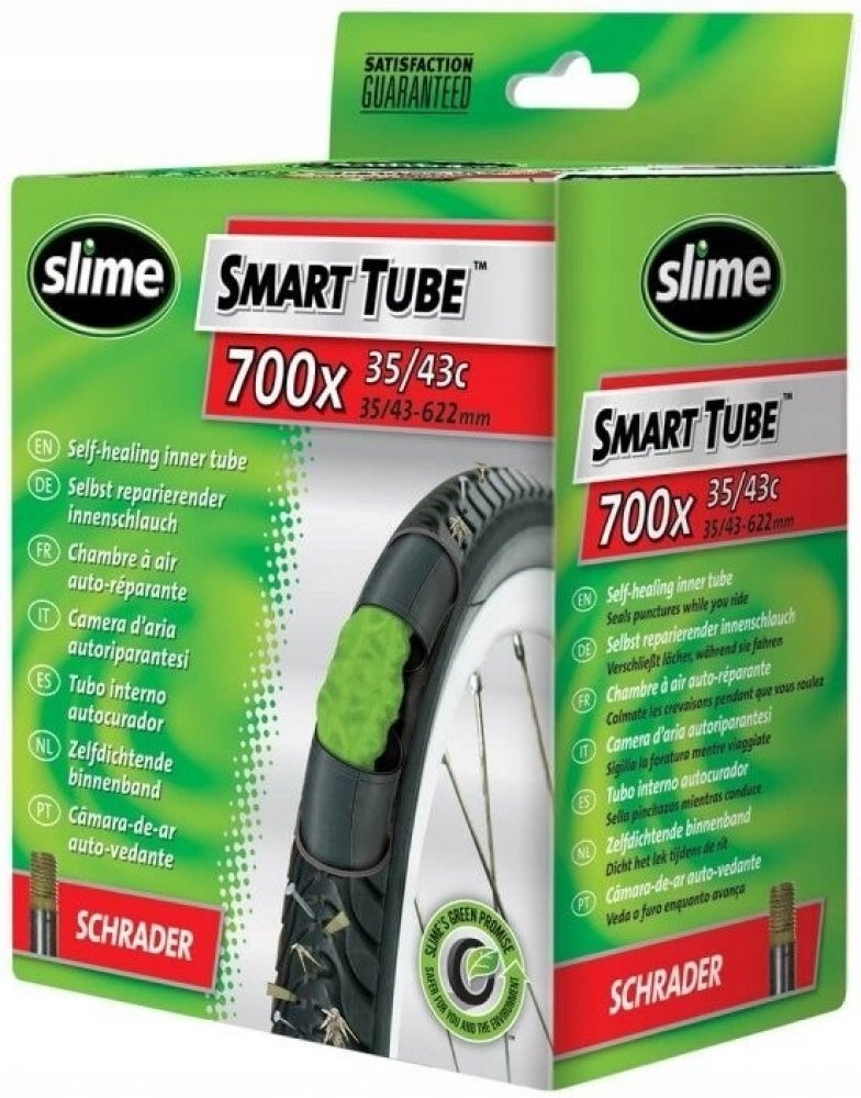 Bezkonkurenčně nejlehčí sebe-opravná duše (jen 219g) se schopností se při defektu sama zalepit až do velikosti průpichu 3 mm. Slime Lite duše je kombinace lehké butilové duše s revoluční a prověřenou těsnící technologií SLIME s poloviční váhou se schopností prevence průpichu bez zbytečného navýšení váhy. Síla stěny duše 0,7 mm. (možno objednat s Presta (úzký) ventilem,nebo Schrader Moto ventilem)