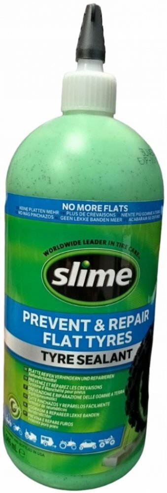 Těsnění bezdušových pneumatik SLIME Tyre Sealant - je nejbezpečnější, nejúčinnější. Utěsní mikro-průrazy pneumatik do 6 mm. Určeno pro všechny typy bezdušových pneumatik. Lze jej použít v automobilech, motocyklech, pracovních vozidlech, golfových vozících, pojízdných sekačkách, malých přívěsech,, skútrech a mnoha dalších. Neobsahuje toxické látky, je bezpečný, nehořlavý, rozpustný ve vodě.