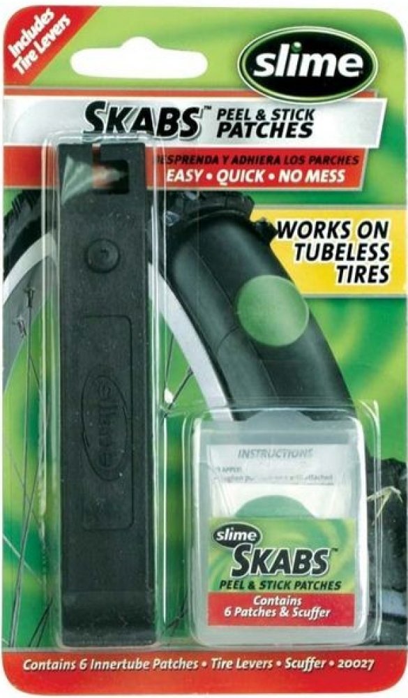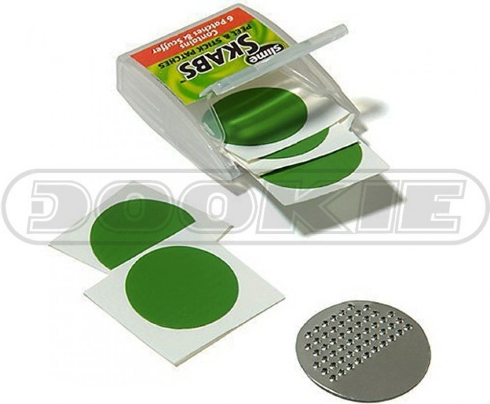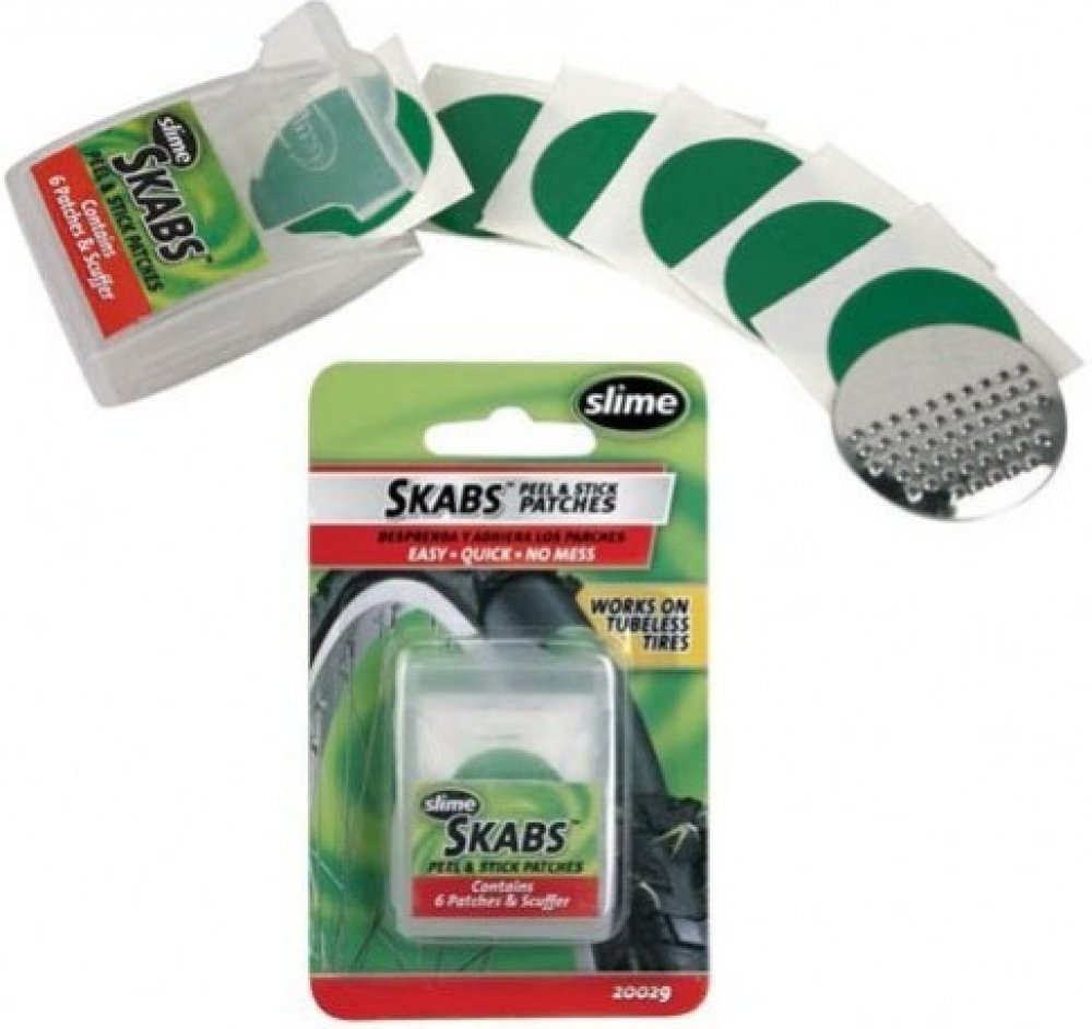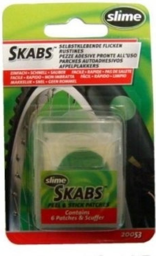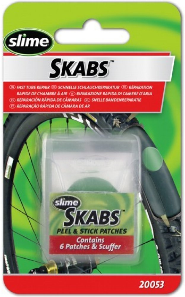 Samolepící záplaty SKABS pro rychlou opravu pichlé cyklo duše. Jendoduchá aplikace, velmi rychlá oprava defektu. Balení je ideální do kapsy dresu či ledvinky.