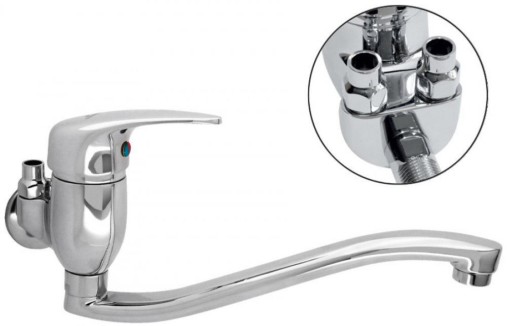 Mosadzný výrobok | Viditeľné časti s povrchovou úpravou Ni-Cr | Ovládacie rukoväte – zinková zliatina s povrchovou úpravou Ni-Cr | Uzatváranie teplej a studenej vody riešené pomocou mosadzných vrškov bez povrchovej úpravy |Pripojenie na rozvod vodovodu ohybnými hadicami s ochranným opletením podľa STN EN 13618 | Plastové súčiastky + tesniace elementy – materiál odolný voči pracovným teplotám a tla...