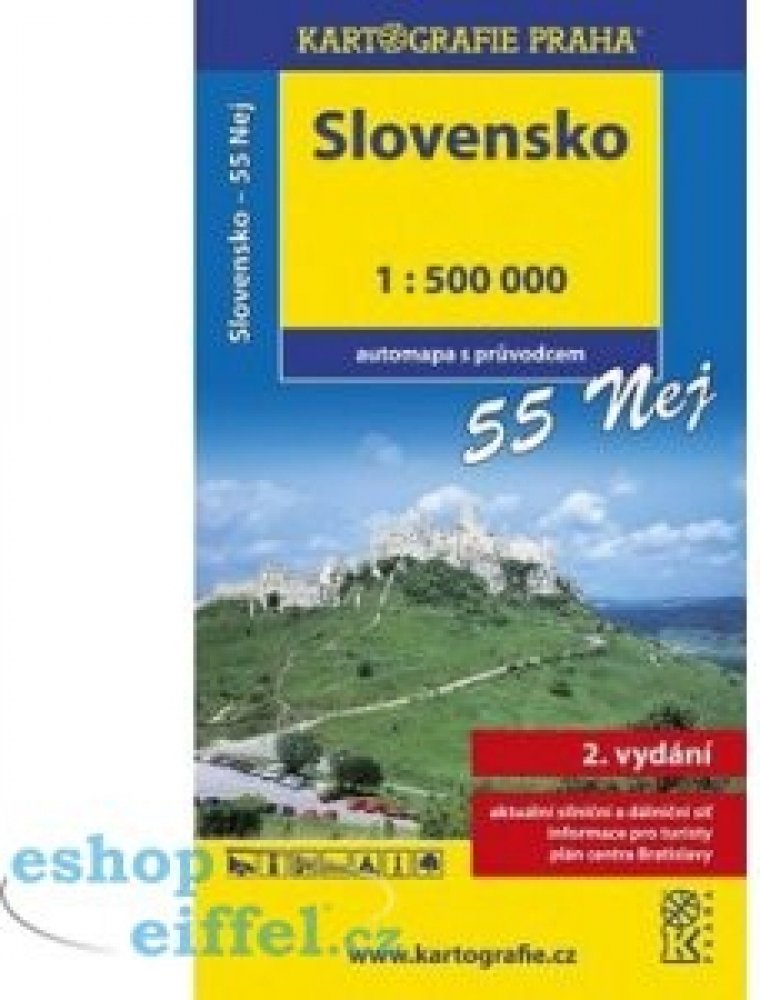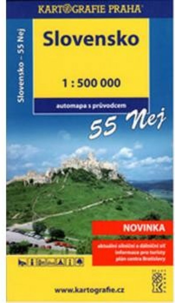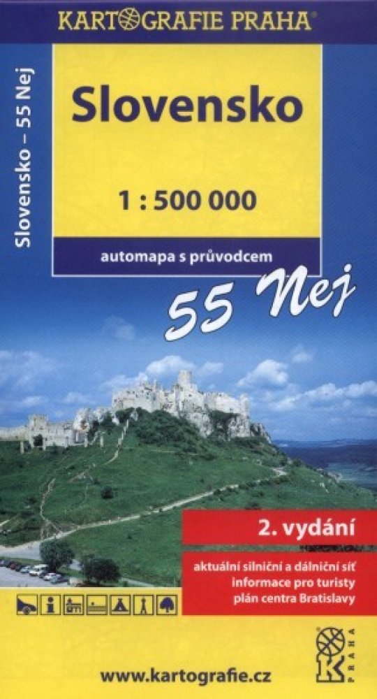 Rozkládací automapa SR kombinovaná s praktickým miniprůvodcem po nejzajímavějších místech SR.. - aktuální síť dálnic, hlavních a vedlejších silnic
