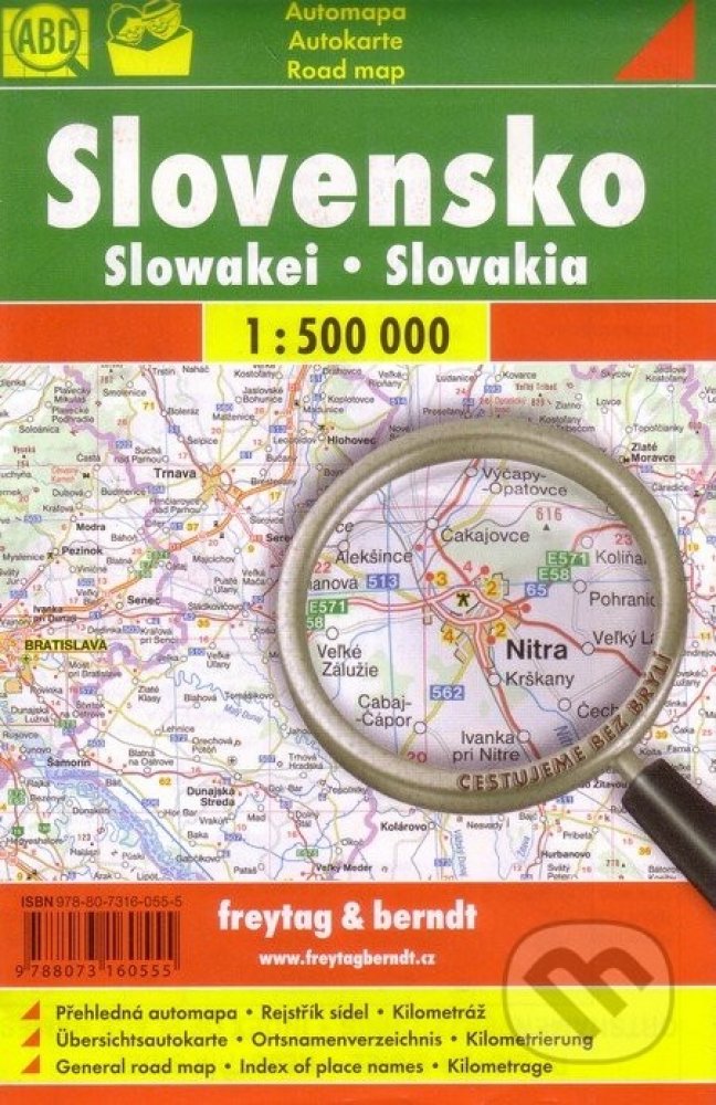 Titul patří do speciální edice "Cestujeme bez brýlí", mapa má větší písmo a neobsahuje tolik detailů jako jiné mapy stejného měřítka. Automapa v měřítku 1 : 500 000 (1 cm = 5 kilometrů) zobrazuje síť silnic a dálnic s dopravními vzdálenostmi, dále všechna sídla a vybraný tematický obsah (hrady, zámky, kláštery, kempy apod.). Součástí mapového podkladu jso...