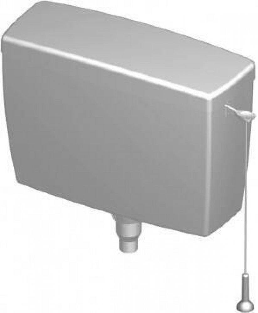 Vysokopoložená nádržka k samostatnému WC klozetu, splachování šňůrkou s táhlem, splachovací množství 3 a 9l, přívod vody zleva a zprava.