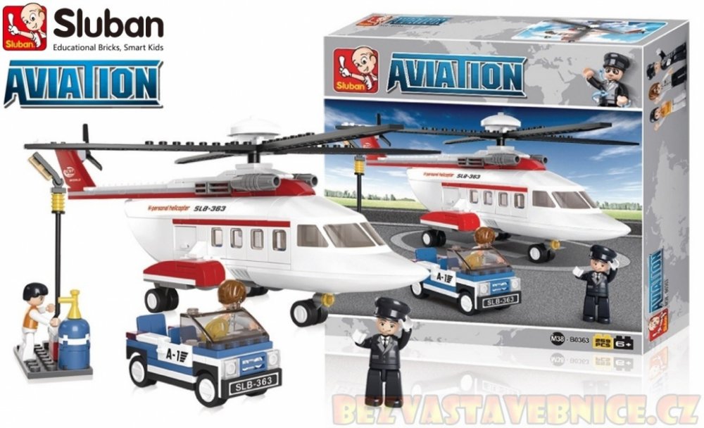 Sluban Letiště M38-B0363 Osobní vrtulník Stavebnice Sluban jsou funkčně velmi dobře provedeny. Jednotlivé dílky do sebe pasují a hlavně drží. A to jak mezi sebou tak i s dílky dalších značek kvalitních stavebnic jako je například LEGO. Značka Sluban je známá po celém světě – ve východní i západní Evropě, v USA, Kanadě, Rusku, Austrálii a taky v Hong Kongu, Indii a dalších. V Číně, kde sídlí výrobn...