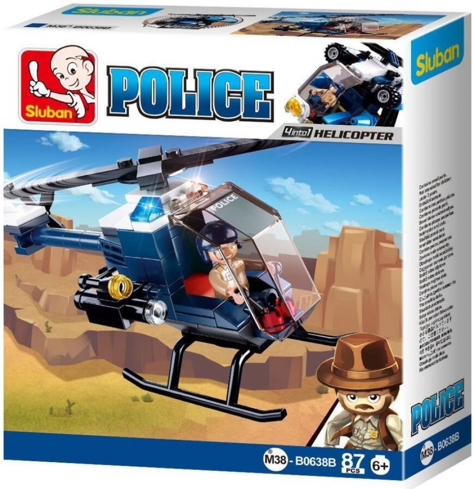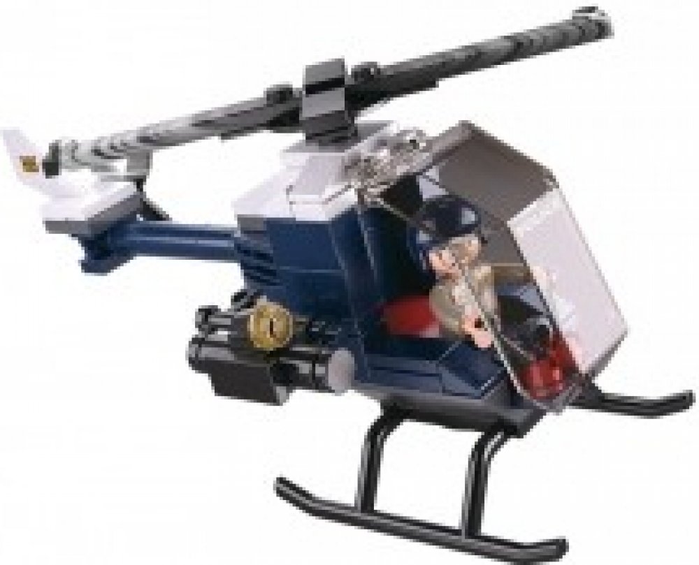 SLUBAN Police (M38-B0638B) Policejní helikoptéra. Kvalitní plastová stavebnice. Lze kombinovat s většinou ostatních známých stavebnic. Součástí 1 figurka. 4into1.