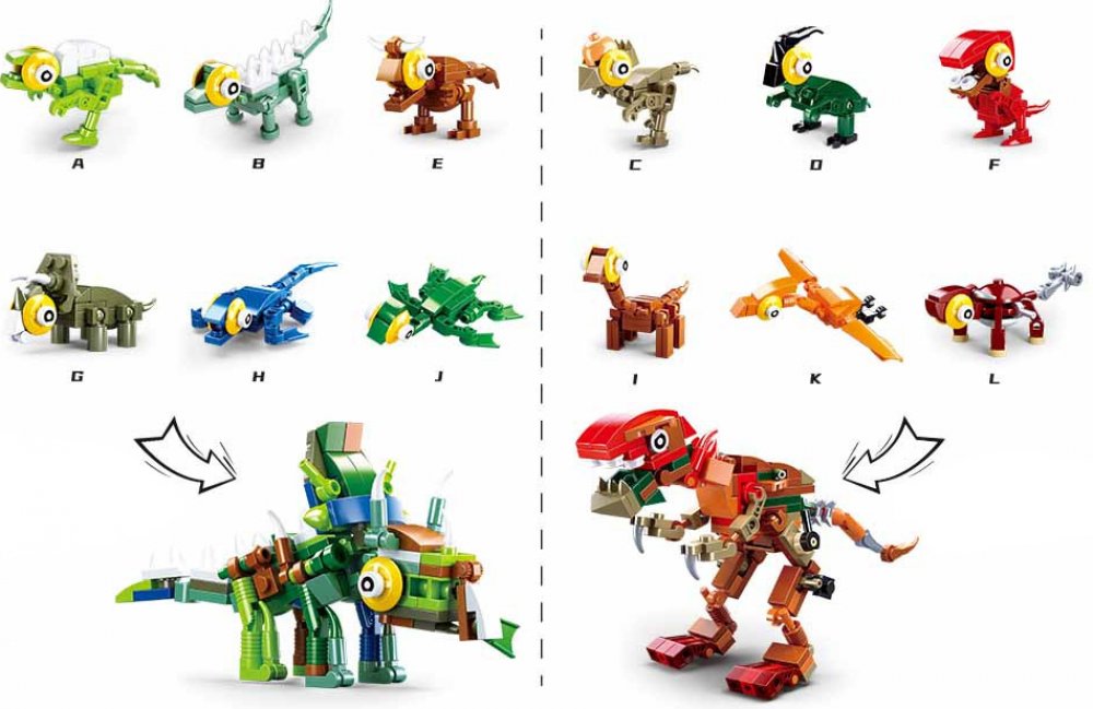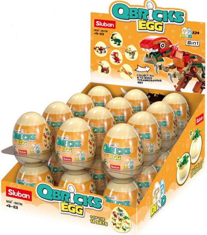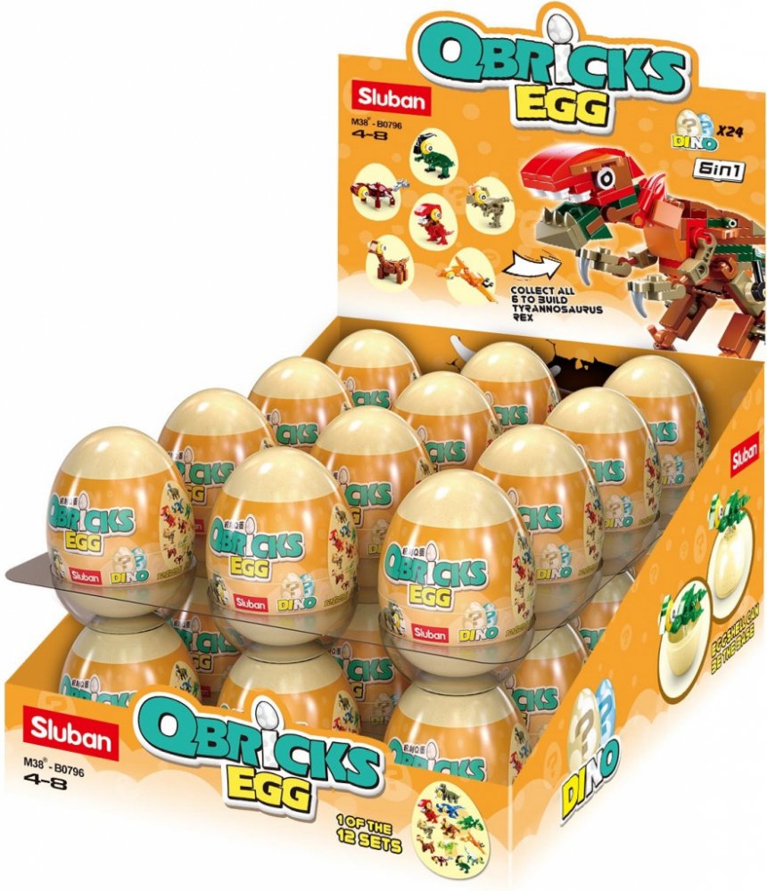 Jaký dinosaurus se skrývá ve vejci? Nechte se překvapit! Jde o sérii samostatných "ministavebnic" dinosaurů, jejichž kompletací vznikne možnost sestavit velký ucelený model samotného Tyranosaura Rexe či Triceratopse. Inovativní stavebnice Sluban je možno kombinovat s podobnými stavebnicemi mnoha dalších významných výrobců. Jsou vyráběny z kvalitního, nezávadného a odolného ABS plastu. Každá stavebnice je opatřena návodem k sestavení a balena v pestře potištěném vajíčku.
