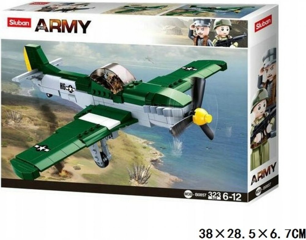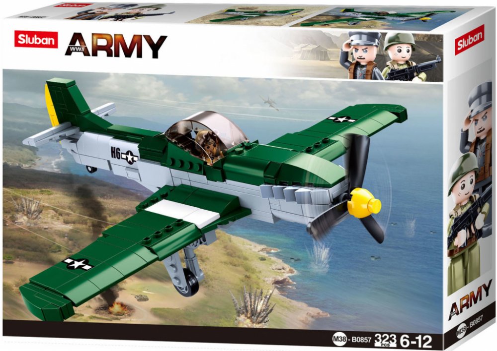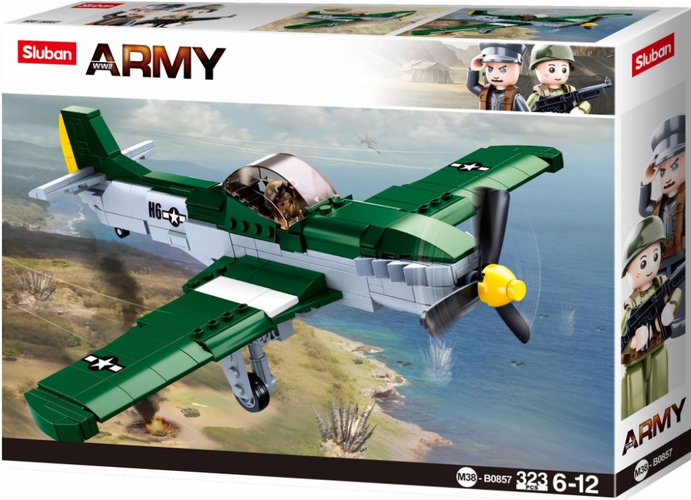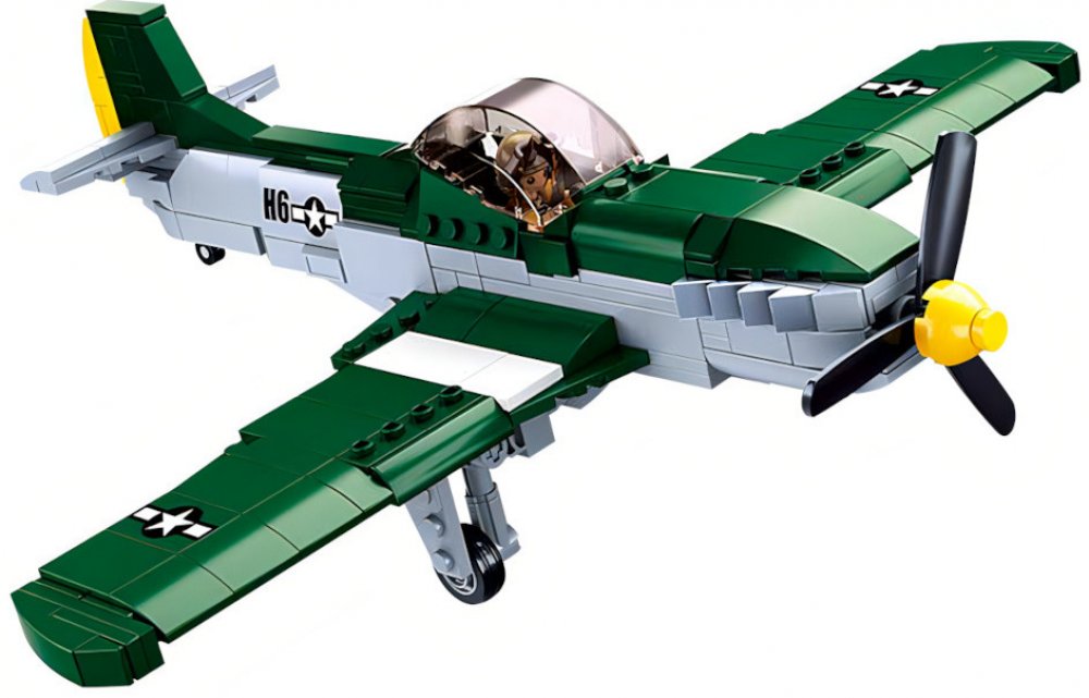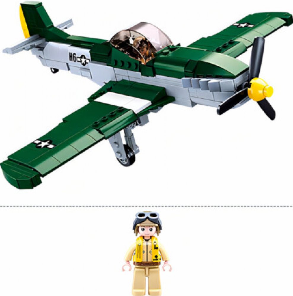 Sestav si stíhací letoun spojeneckého letectva. Stavebnice obsahuje 323 dílků, 1 figurku, tištěný návod a nálepky.