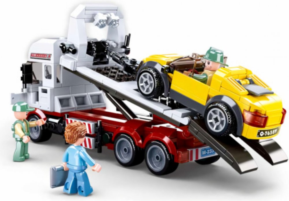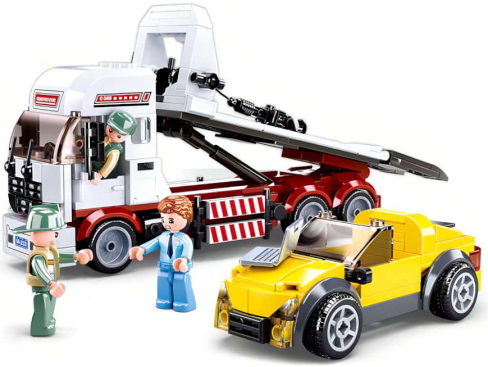 Stavebnice obsahuje různé plastové díly, které se snadno spojují dohromady podle přiloženého návodu. Díly jsou vyrobeny z kvalitního plastu a mají detailní provedení, což umožňuje vytvořit realistický model vozu na přepravu automobilů. Součástí stavebnice jsou také potřebné ozdobné a funkční prvky, jako jsou pohyblivá ramena pro nakládání a vykládání automobilů, otevírací dveře a další detaily.