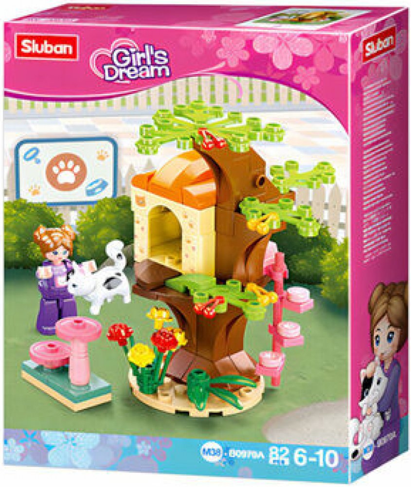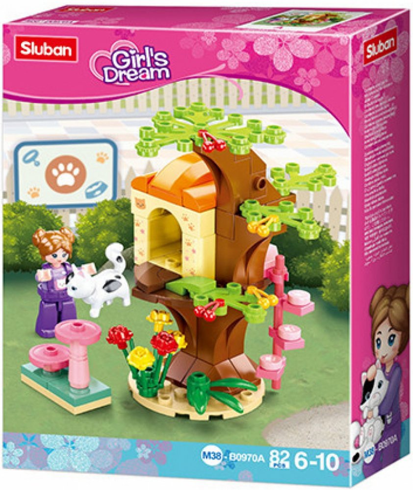 Domeček pro kočičky, umístěný na stromě si prostě zamilujete. Veselé barvy, kytičky a růžové schůdky, aby kočička vyšplhala do domečku. Její majitelka si mezitím může odpočinou na růžové židli se stolečkem. Stavebnice ze série Sluban Girls Dream pro holky obsahuje 82 dílků, figurku, kočičku, nálepky a tištěný návod. Stavebnice Sluban je možno kombinovat s podobnými stavebnicemi mnoha dalších význa...
