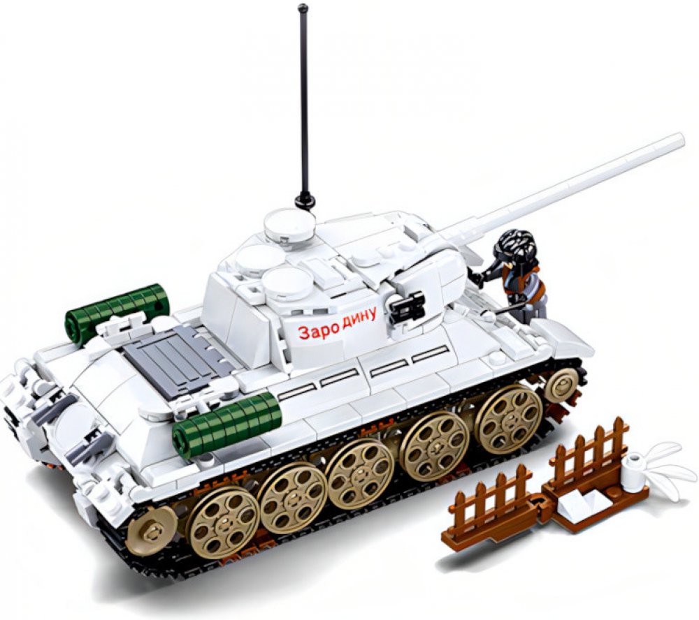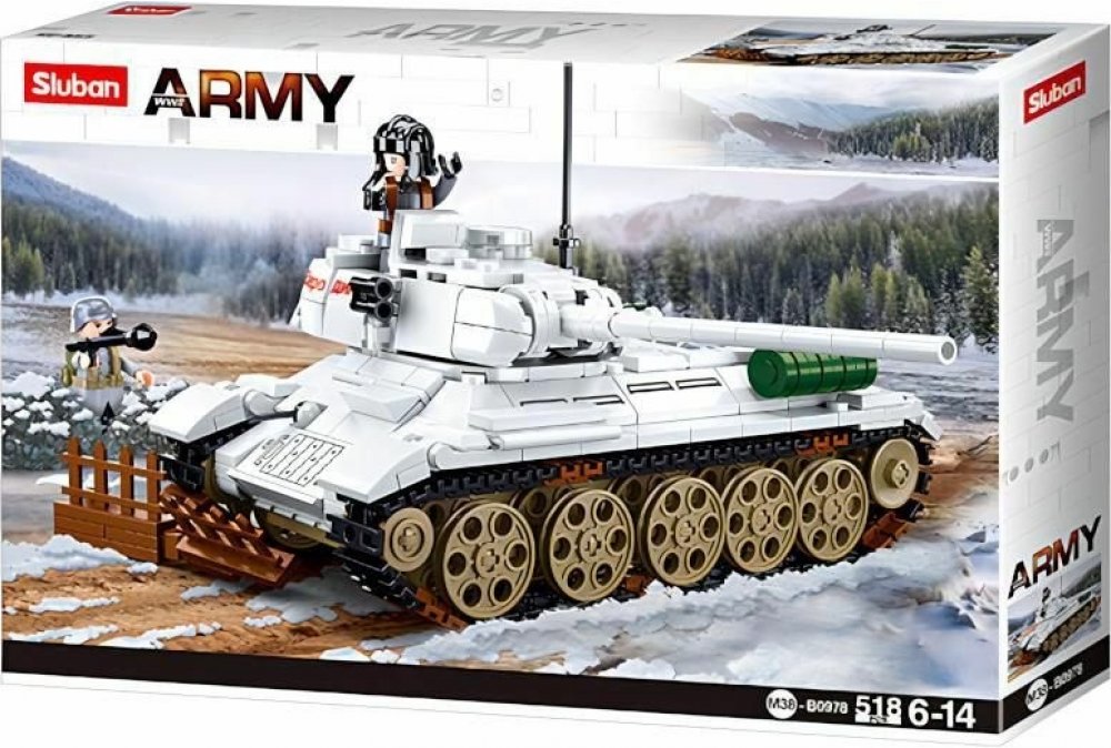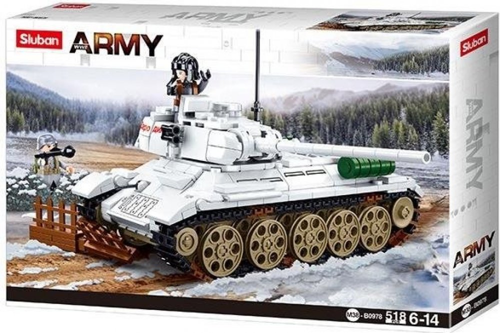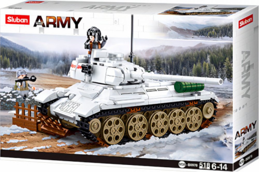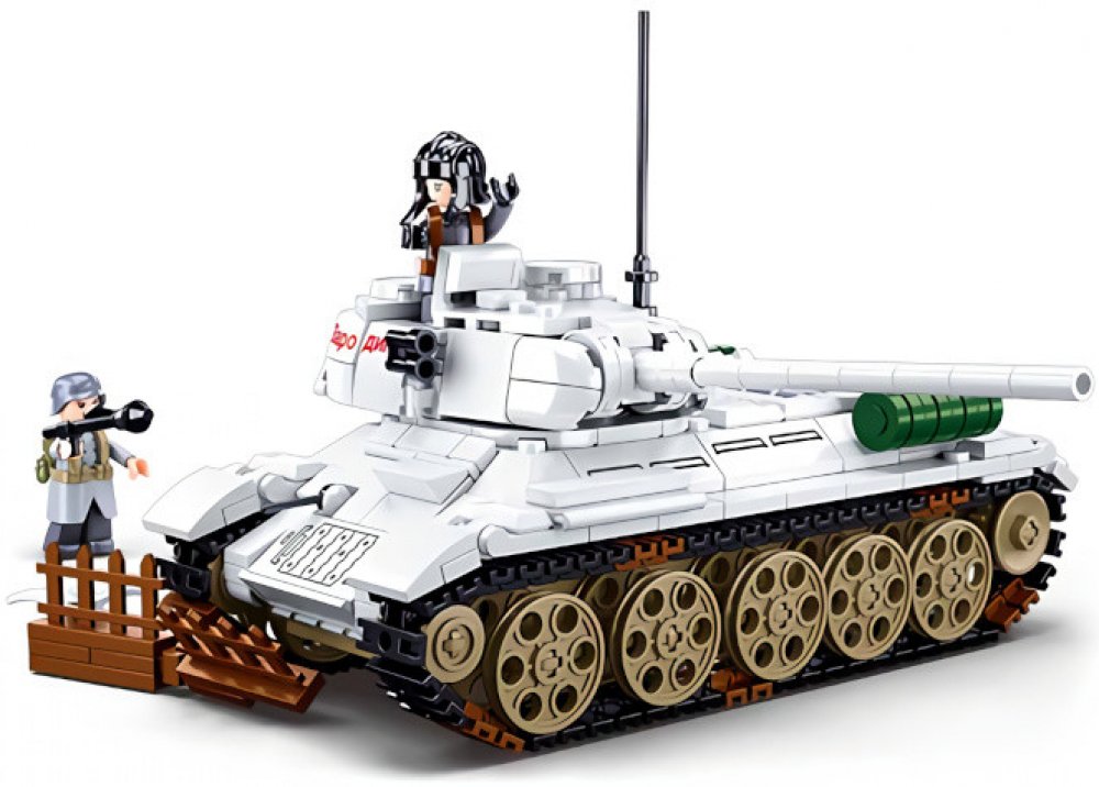Další tank ze sady Army, Bitva o Budapešť. Bílý tank T-34/85. Stavebnice obsahuje také 2 figurky.