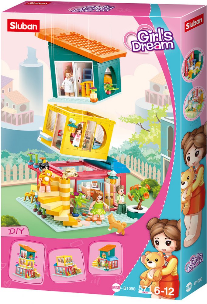 Sluban Girls Dream M38-B1090 Třípatrový domek je vstupenka do světa, kde se kreativita setkává s realitou. Každé patro tohoto nádherného domku má svůj jedinečný charakter. Červeně prosklené první patro s útulným obývacím pokojem, žluté druhé patro s kuchyní a zelené třetí patro s pokojem plným knih - vše je připravené pro Vaše malé architektky, aby rozvíjeli svou představivost. Mohou si vybrat, zd...
