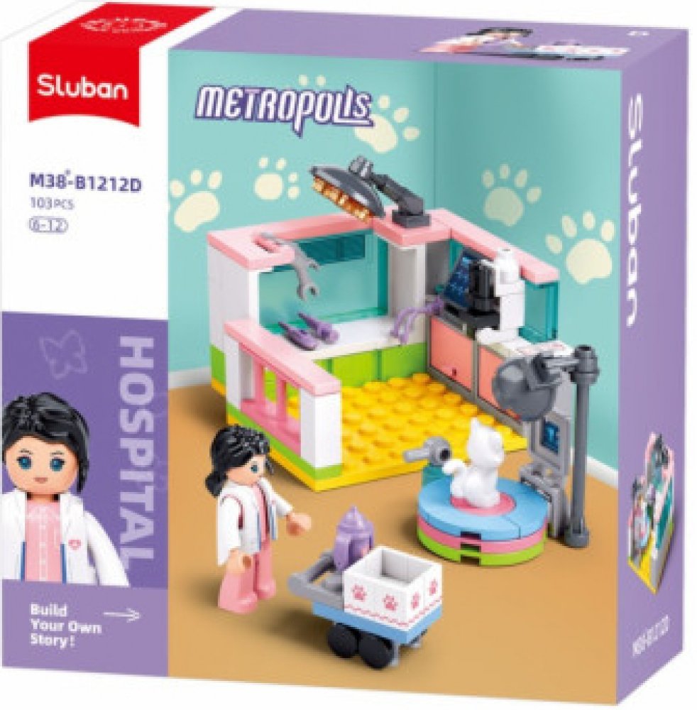 Má Váš domácí mazlíček zdravotní problém? Navštivte s ním tuto moderní ambulanci. Inovativní stavebnice Sluban je možno kombinovat s podobnými stavebnicemi mnoha dalších významných výrobců. Jsou vyráběny z kvalitního, nezávadného a odolného ABS plastu. Každá stavebnice je opatřena návodem k sestavení a balena v pestře potištěné papírové krabičce. Hlavní vlastnosti: 103 dílků, 1 figurkainovativní f...