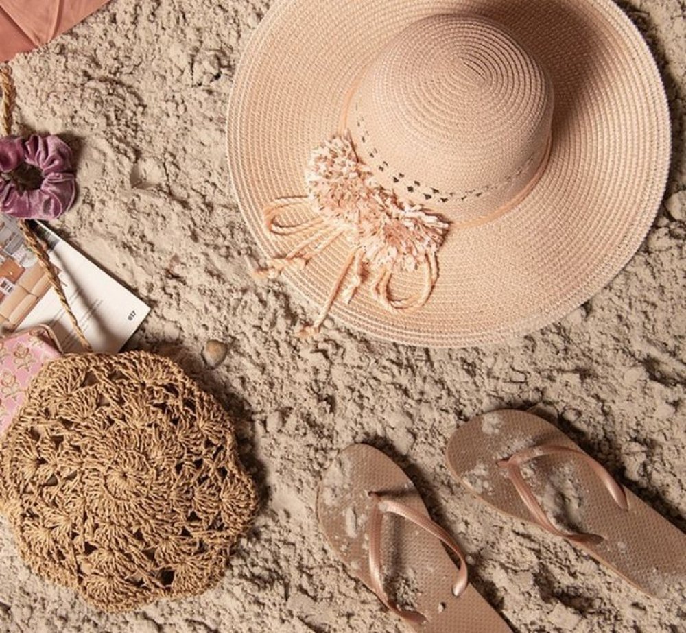 Sluneční dámský klobouk s květinou růžový