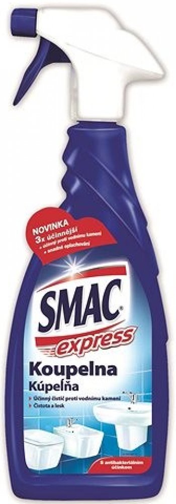 SMAC Koupelnu lze použít na všechny běžné povrchy v koupelně. Nepoužívejte jej však na mramor a barevně glazovanou sanitu. U bílé sanity vyzkoušejte nejdříve na skytém místě. Pokud místo ztratí lesk, výrobek nepoužívejte. Nastříkejte na čištěný povrch, nechte několik sekund působit a poté důkladně opláchněte vodou. Na odolné nečistoty nechte působit několik minut a pak opláchněte.