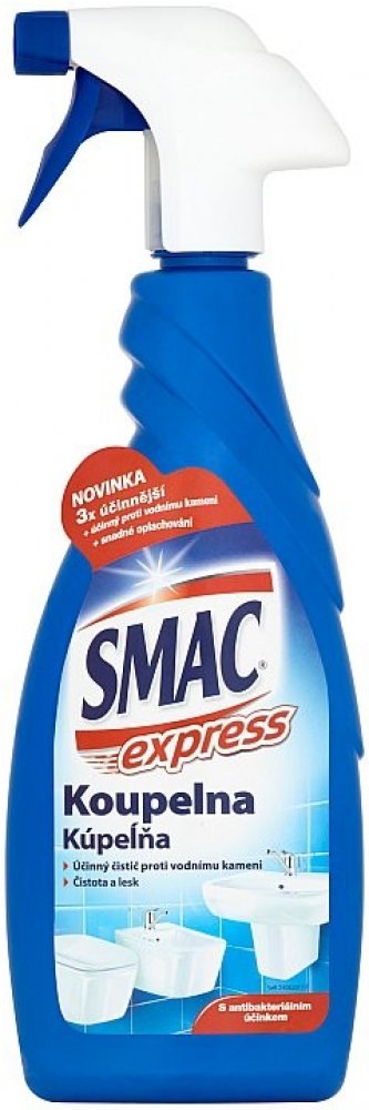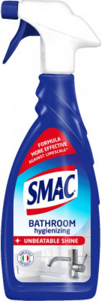 SMAC Koupelna – odstraňuje lehce nečistoty a odolné vápenaté usazeniny ze všech povrchů v koupelně. Složení s antibakteriálním účinkem důkladně čistí a snadno se oplachuje. Povrchy jsou čisté a lesklé po dlouhou dobu.