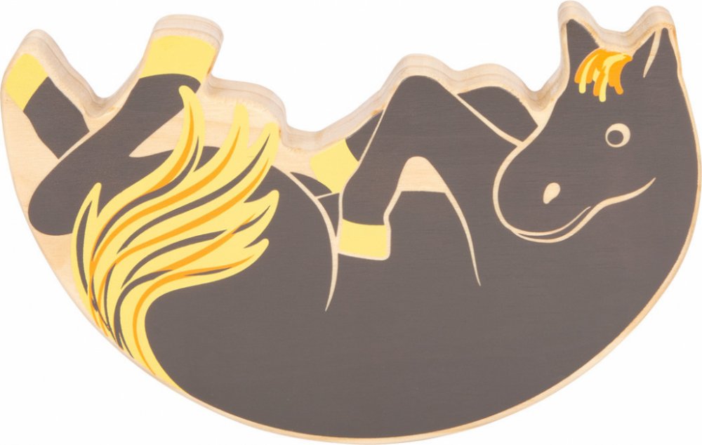 Dřevěná hra pro celou rodinu, ale speciálně pro děti! Kostka určuje, které barevné jablko postavíte na koníka jako další. Pro zjednodušení hry hrajte bez kostky. Design v tematice „koníci a z...
