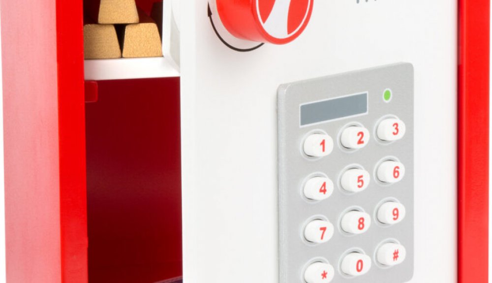 Bankéři a lupiči, pozor! Tento sejf je opravdu něco! Při správné kombinaci se sejf otevře a odhalí svá tajemství – Euro bankovky, zlaťáky a stříbrňáky a také cihličky zlata (vyrobené ze dřeva). Otočný zámek vydává zvuk a tlačítka se dají mačkat. Obsahuje 68 ks příslušenství.