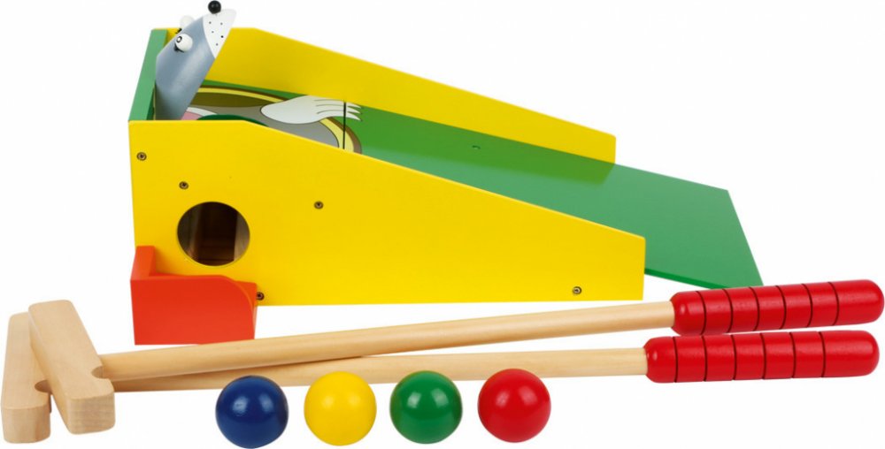 Veselý minigolf pro malé golfové profesionály. 2 kluby, 3 barevné kuličky a jedna jamka. Ideální celoroční hra, kterou lze hrát doma, nebo venku.