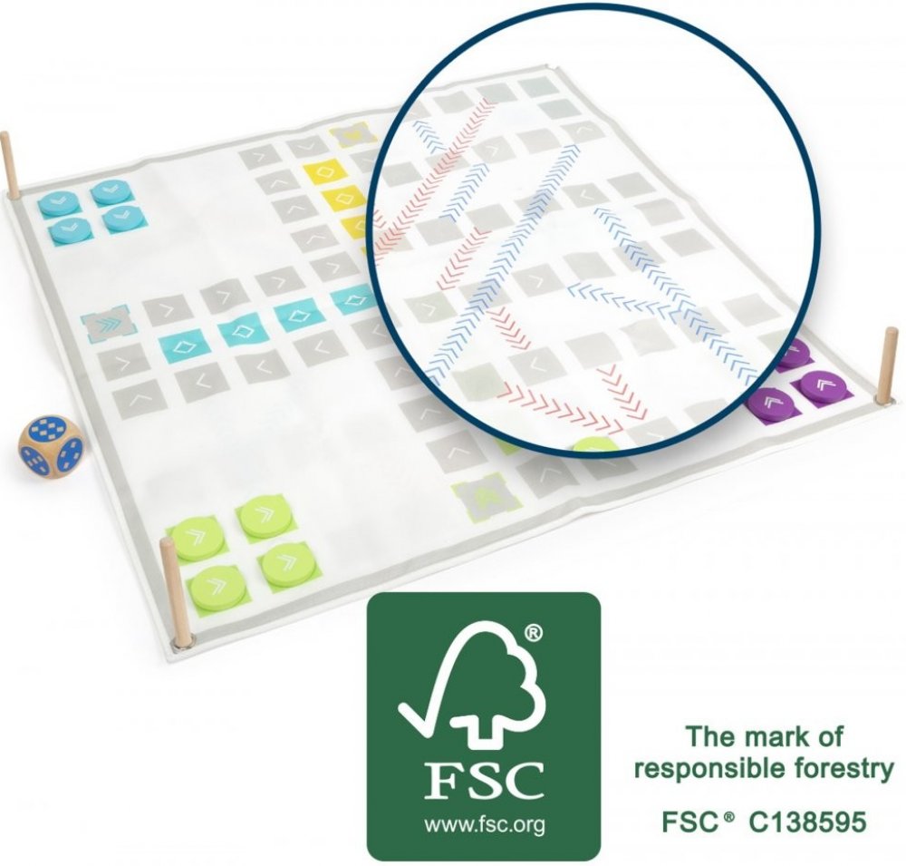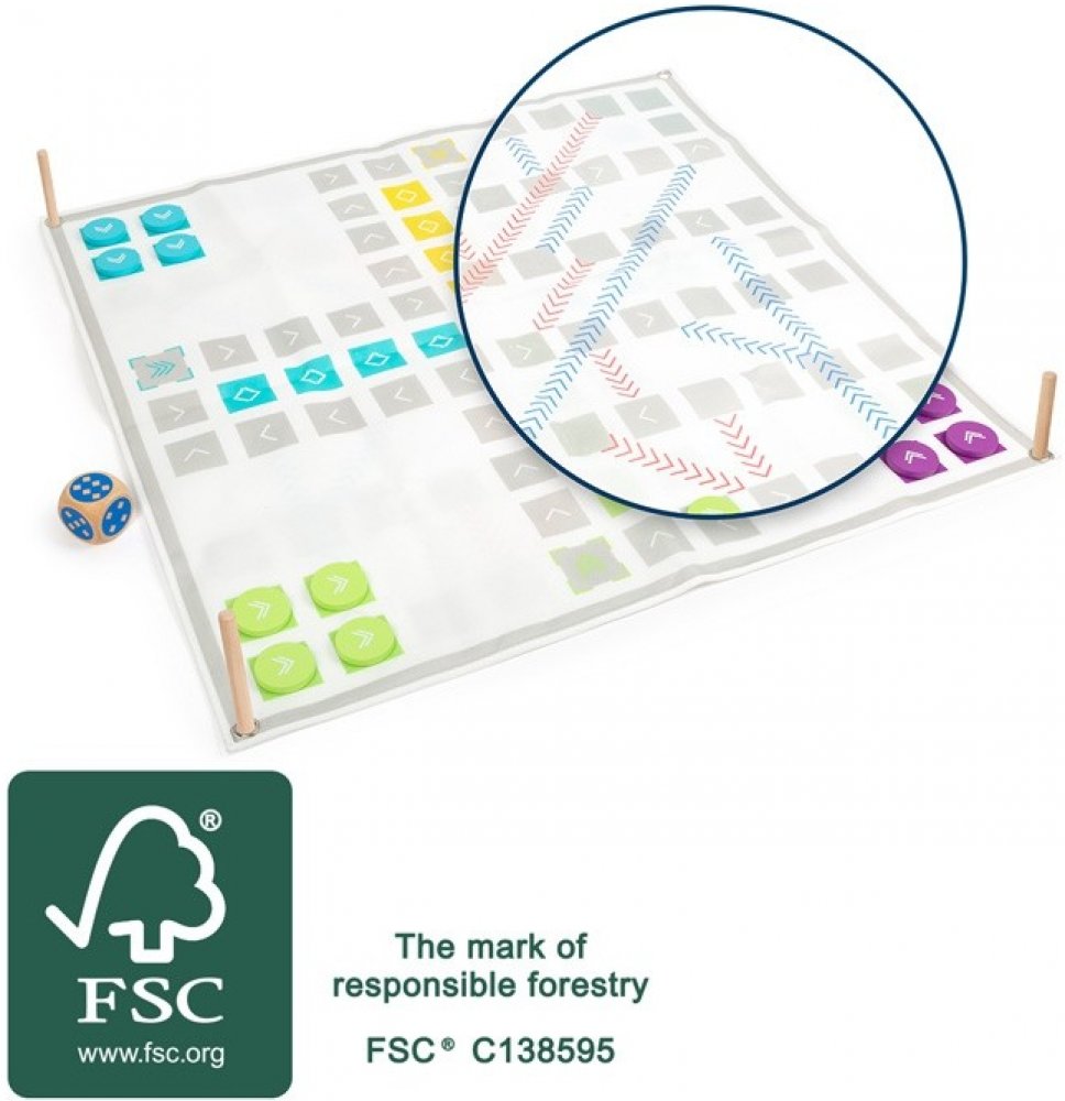 Venkovní Člověče a žebříky jsou zábavou pro celou rodinu. Na této hrací ploše lze hrát dvě klasické hry ve velkém formátu. Na jedne straně hra Člověče, nezlob se a Hadi a žebříky na straně druhé. Hrací plochu je možné ukotvit k zemi pomocí dřevěných kolíků. Kostky a hrací kameny jsou vyrobeny ze 100% certifikovaného dřeva FSC®.