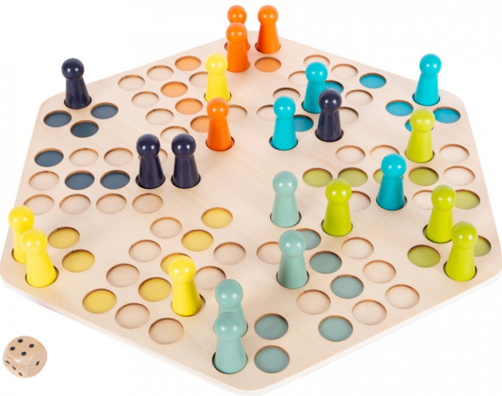 Kostkou udává, kolik kroků může daná figurka udělat. Vzrušující kompaktní společenská hra v moderních barvách.