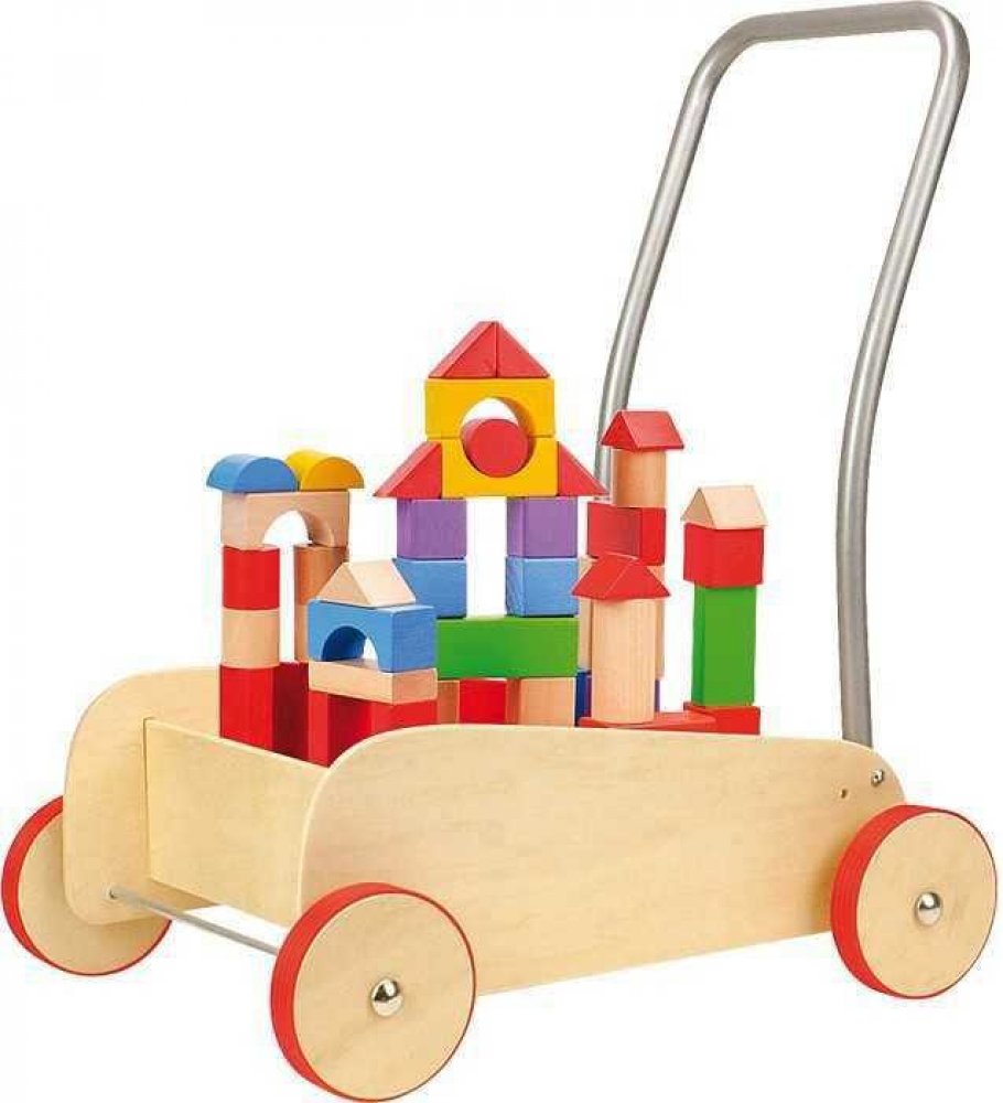 Dřevěné hračky - Chodítko dřevěné kostky ve vozíku