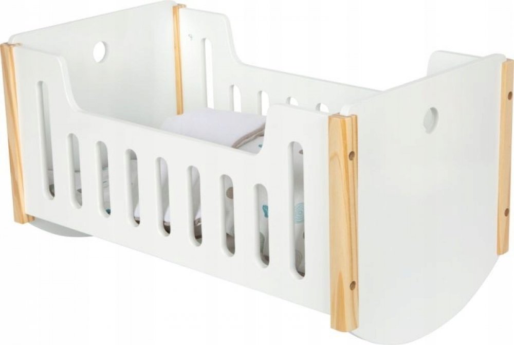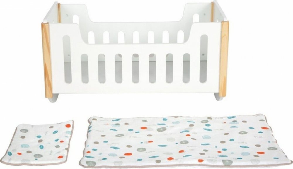 Tato moderní dřevěná kolébka ve skandinávském designu je ideální postýlkou s možností jemného houpání panenek či plyšových zvířátek. Součástí balení je polštář a velká peřinka, které jsou povlečené do barevně neutrálního oboustranného povlečení. Navíc je peřinka dostatečně velká, aby pod ní pohodlně mohly spát panenky nebo plyšáci do velikosti 46 cm. Vysoce kvalitní, stabilní konstrukce, zaoblené ...