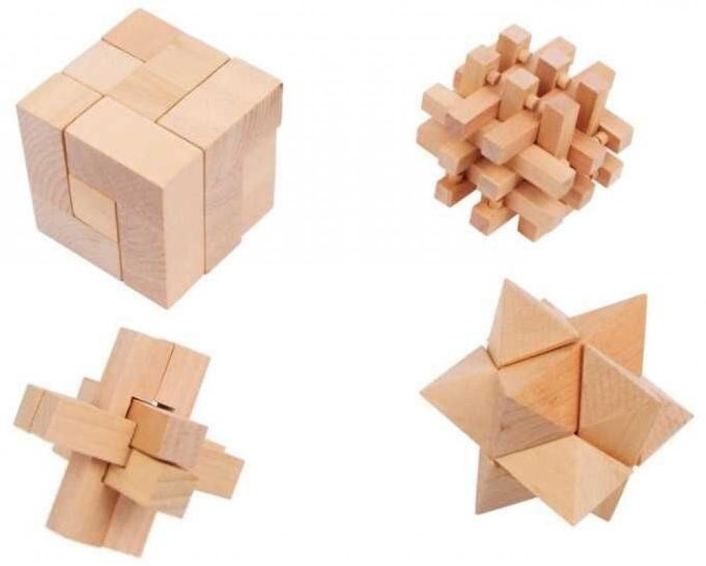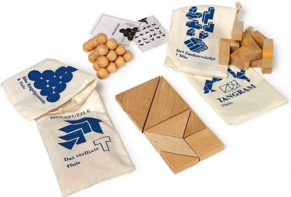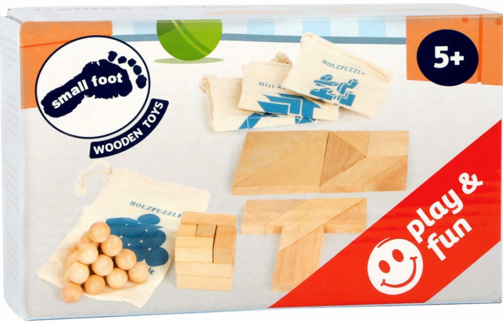 Small Foot Dřevěné hlavolamy set 4ks v pytlících